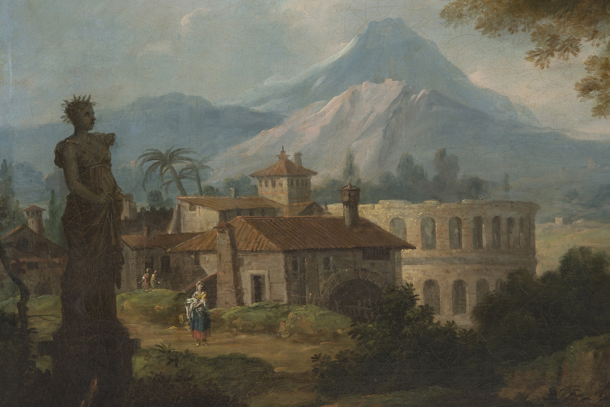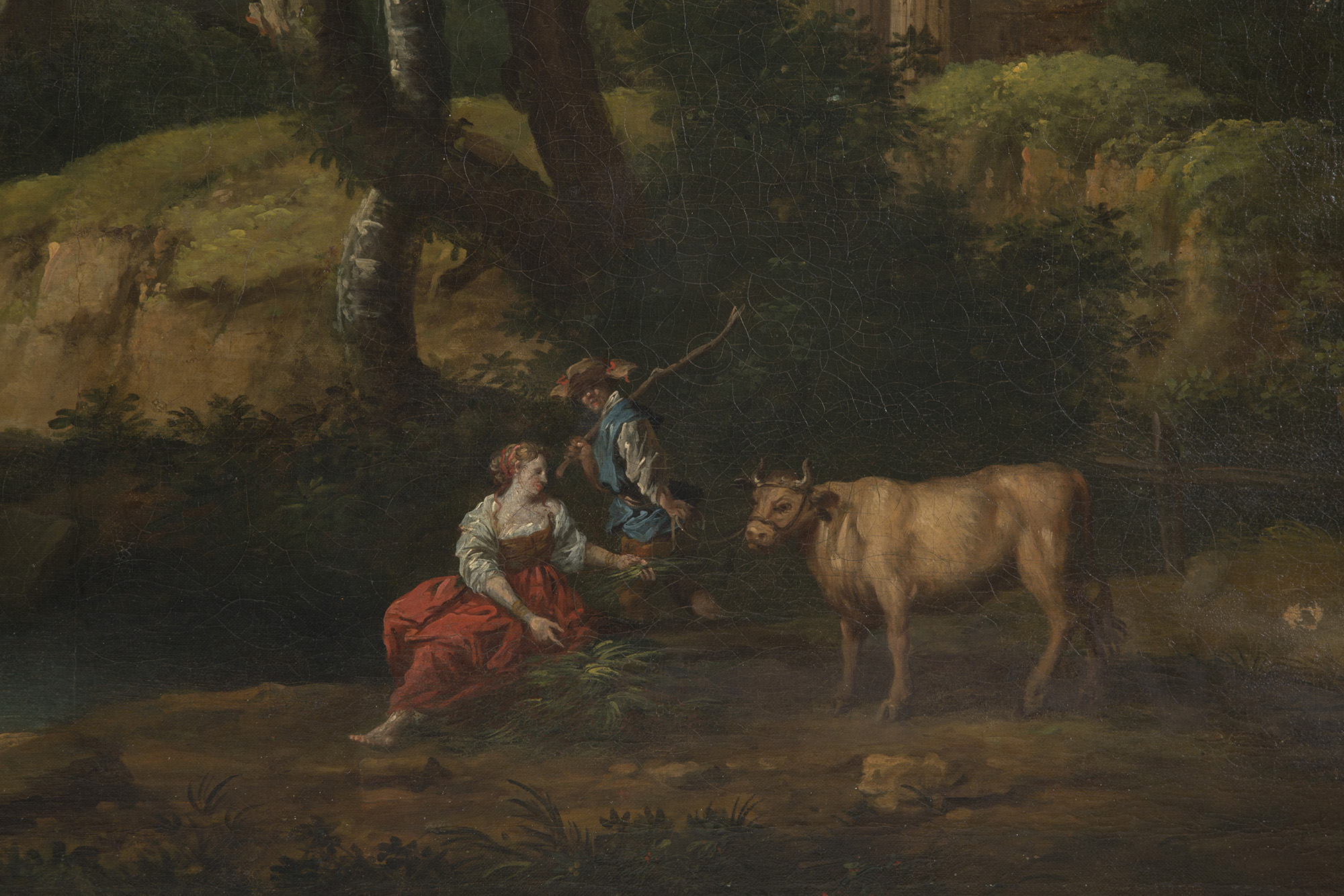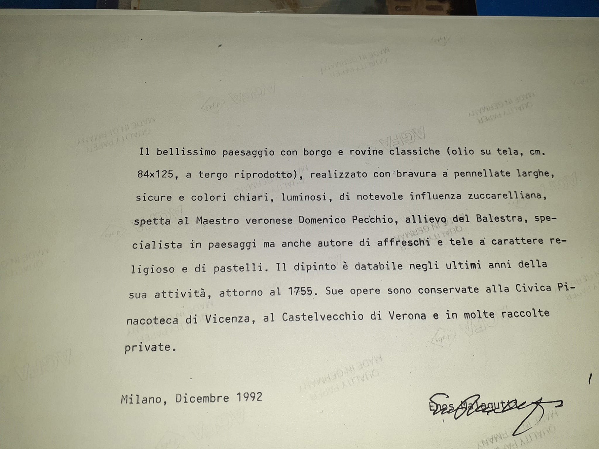 DOMENICO PECCHIO (1687-Verona 1760). Oil painting on canvas depicting "VIEW OF VERONA WITH CHARACTERS". In frame. With attribution letter from Enos Malagutti. Minor defects. 83.5x126.5 cm approx. DOMENICO PECCHIO (1687-Verona 1760). Dipinto olio su tela raffigurante "VEDUTA DI VERONA CON PERSONAGGI". In cornice. Con lettera di attribuzione di Enos Malagutti. Lievi difetti. 83,5x126,5 cm ca.