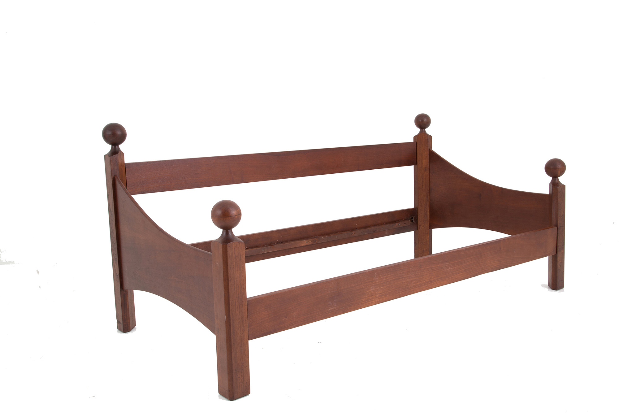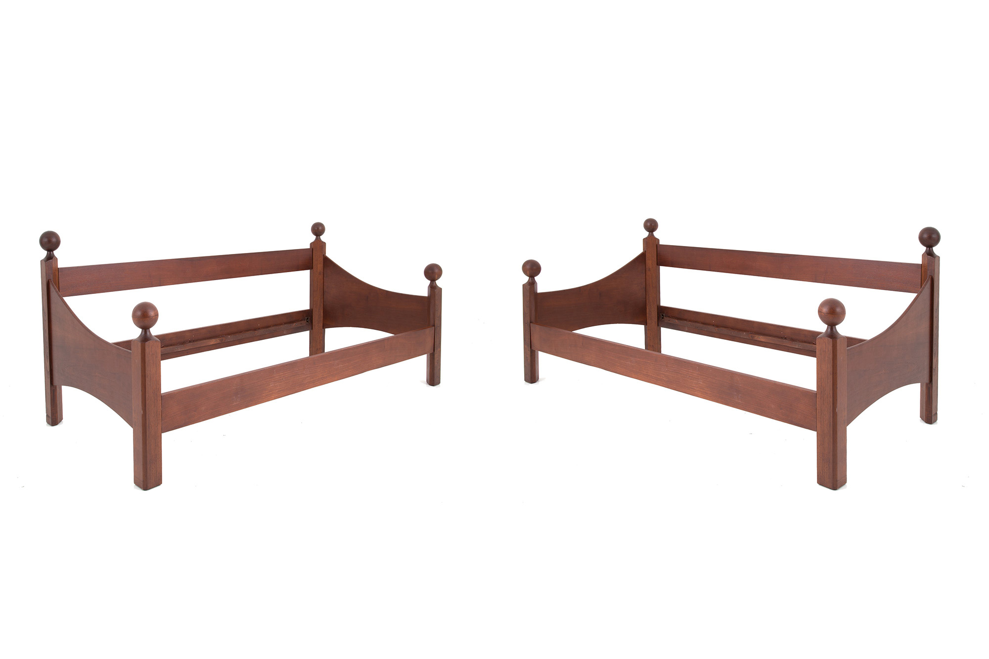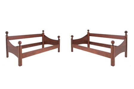 LUIGI CACCIA DOMINIONI (Milano 1913-2016). Pair of L4 Chesa Laria model wooden beds. AZUCENA production. 1950s. Defects. 93x203x98 cm approx. LUIGI CACCIA DOMINIONI (Milano 1913-2016). Coppia di letti modello L4 Chesa Laria in legno. Produzione AZUCENA. Anni '50. Difetti. 93x203x98 cm ca.