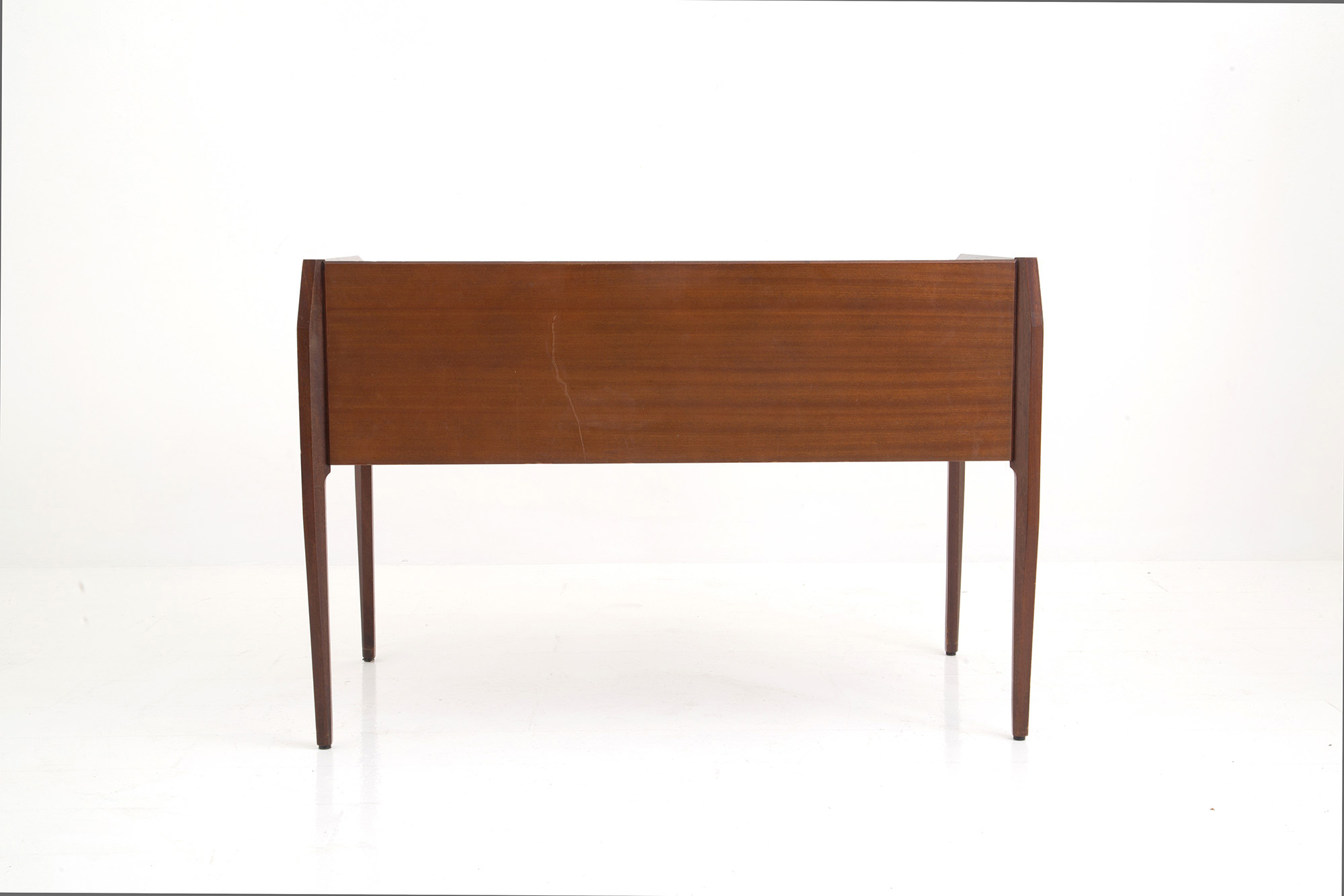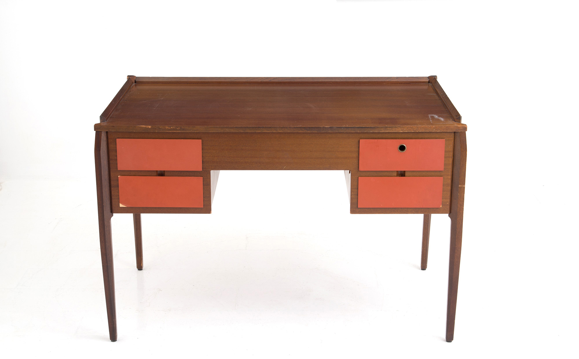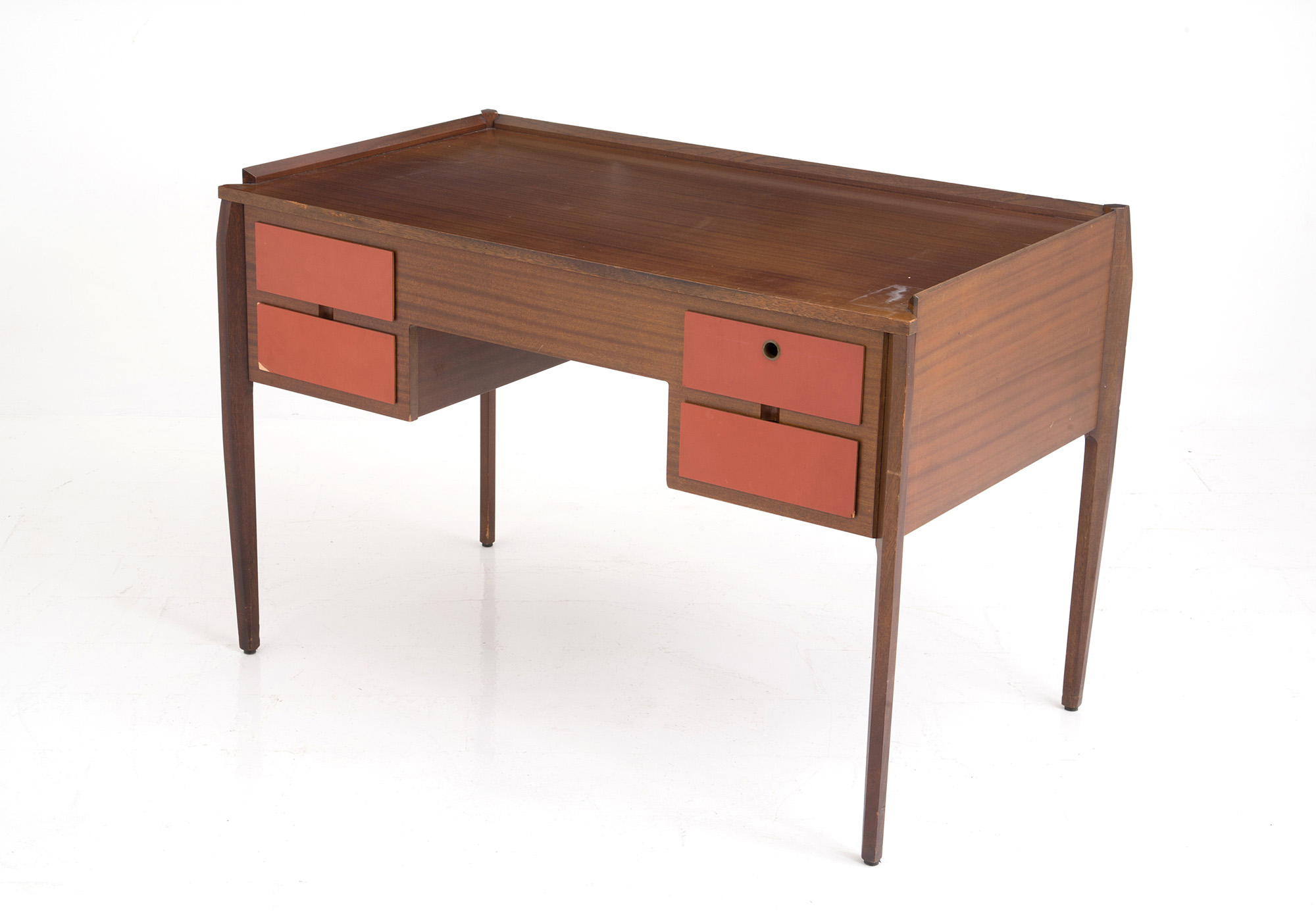 GIO PONTI (attr.)(Milano 1891-1979). Teak desk with four drawers. DASSI production. 1950s. Defects. 79x115x65 cm approx. GIO PONTI (attr.)(Milano 1891-1979). Scrivania in teak con quattro cassetti. Produzione DASSI. Anni '50. Difetti. 79x115x65 cm ca.