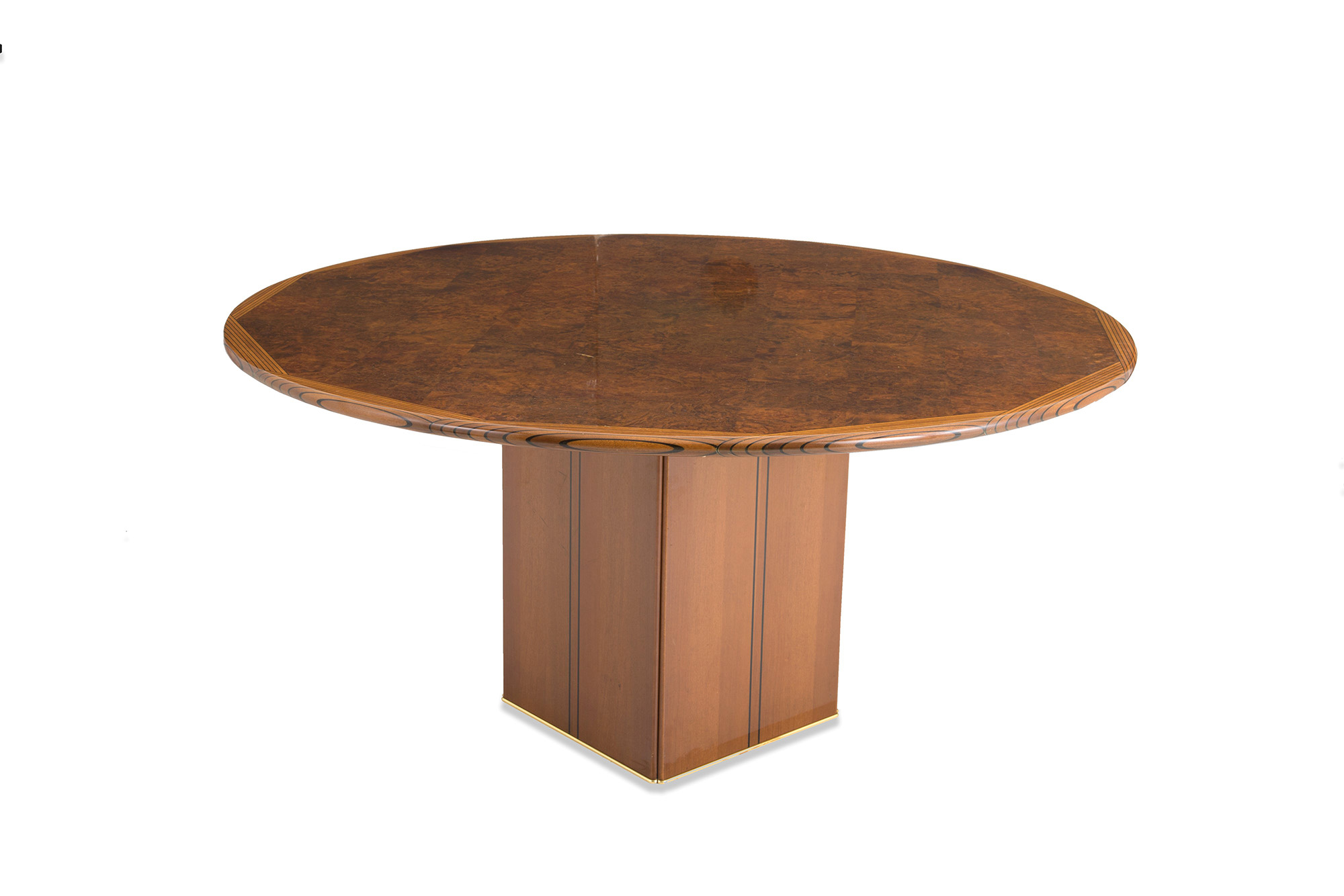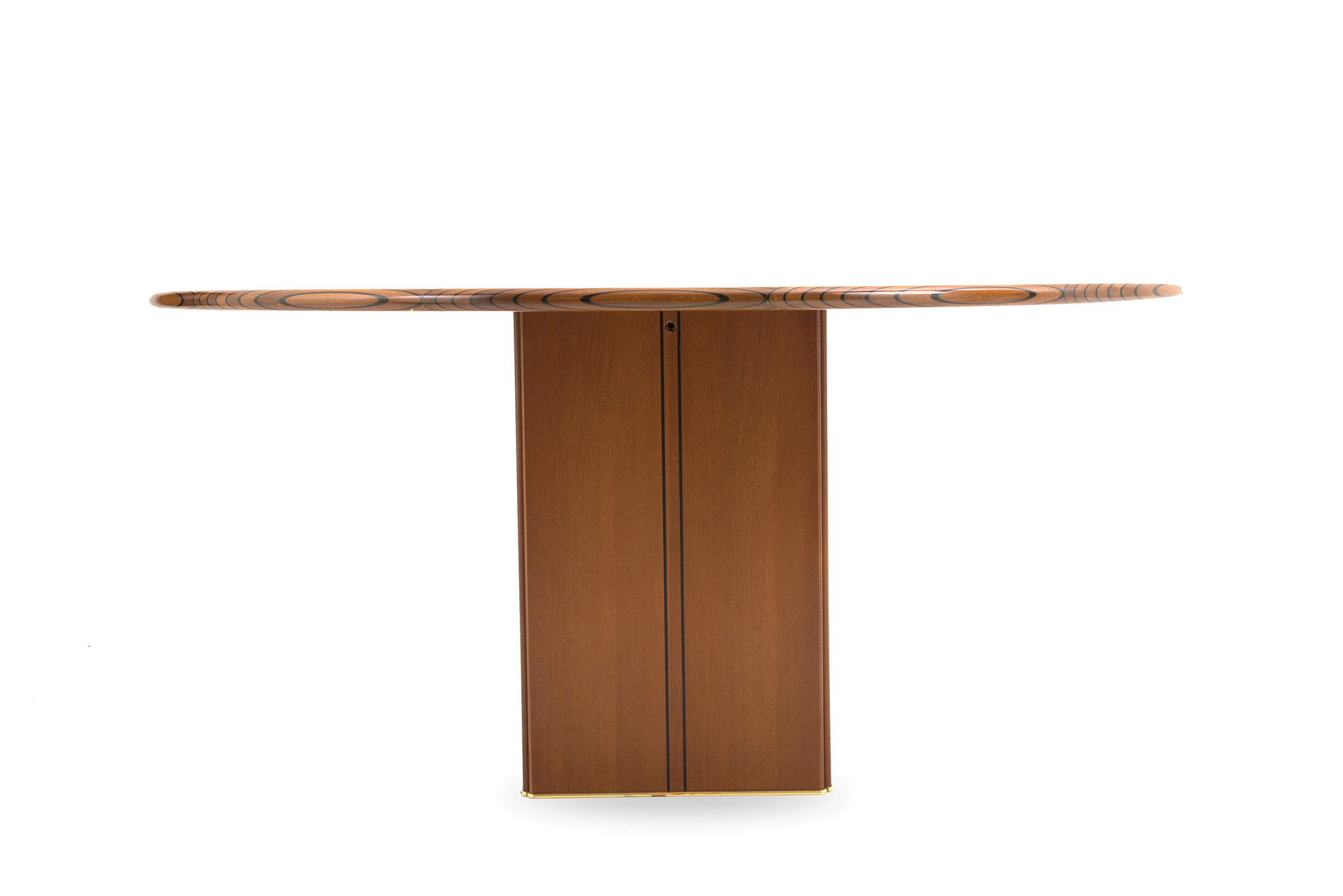 AFRA e TOBIA SCARPA. Artona series Africa table in various woods. MAXALTO production. With brand and label inside the base. 70's. Signs of wear and tear over time. 70x145,5 cm approx. AFRA e TOBIA SCARPA. Tavolo Africa serie Artona in legni vari. Produzione MAXALTO. Con marchio ed etichetta all'interno della base. Anni ’70. Segni di usura del tempo. 70x145,5 cm ca.