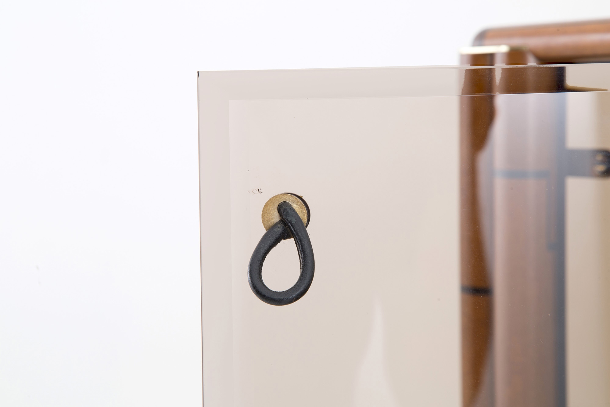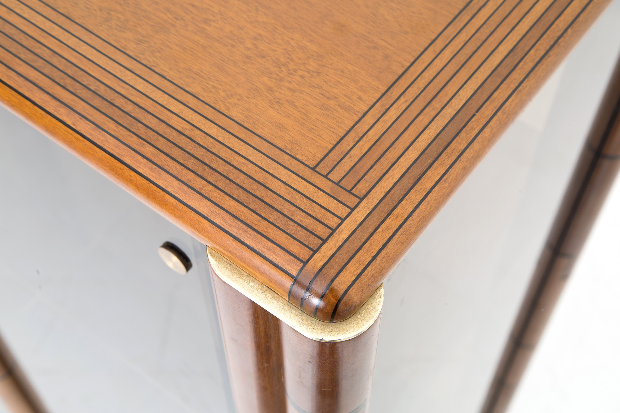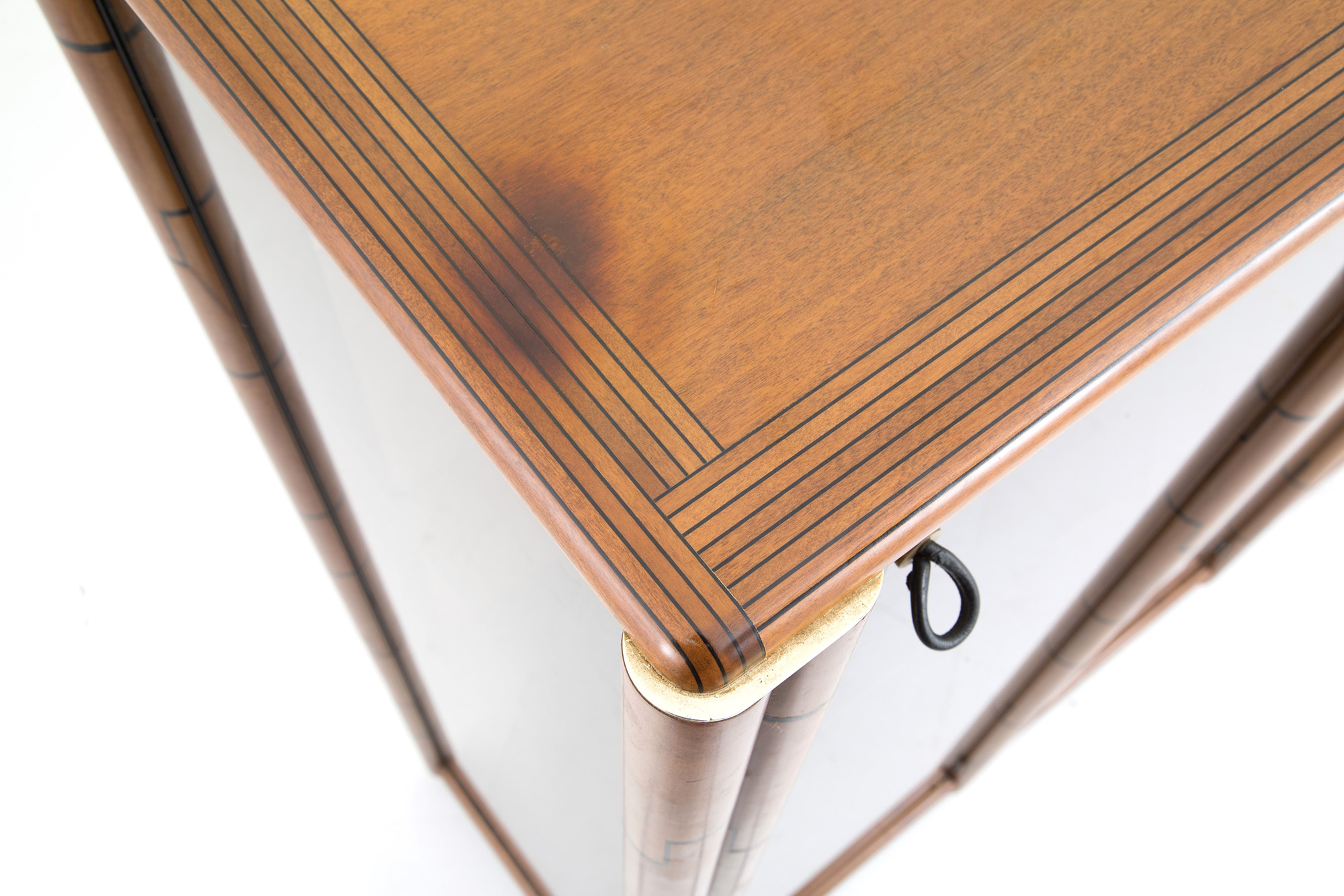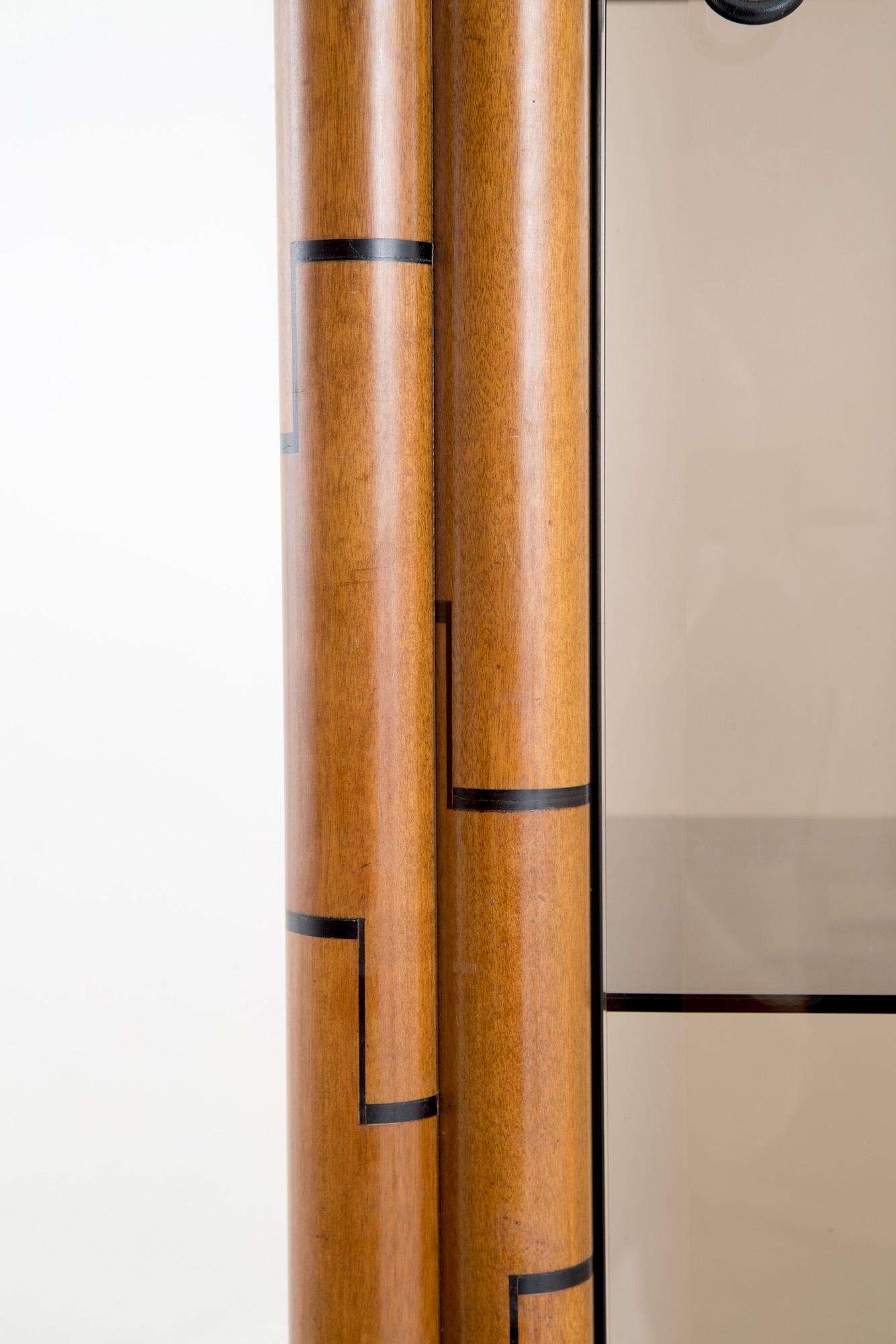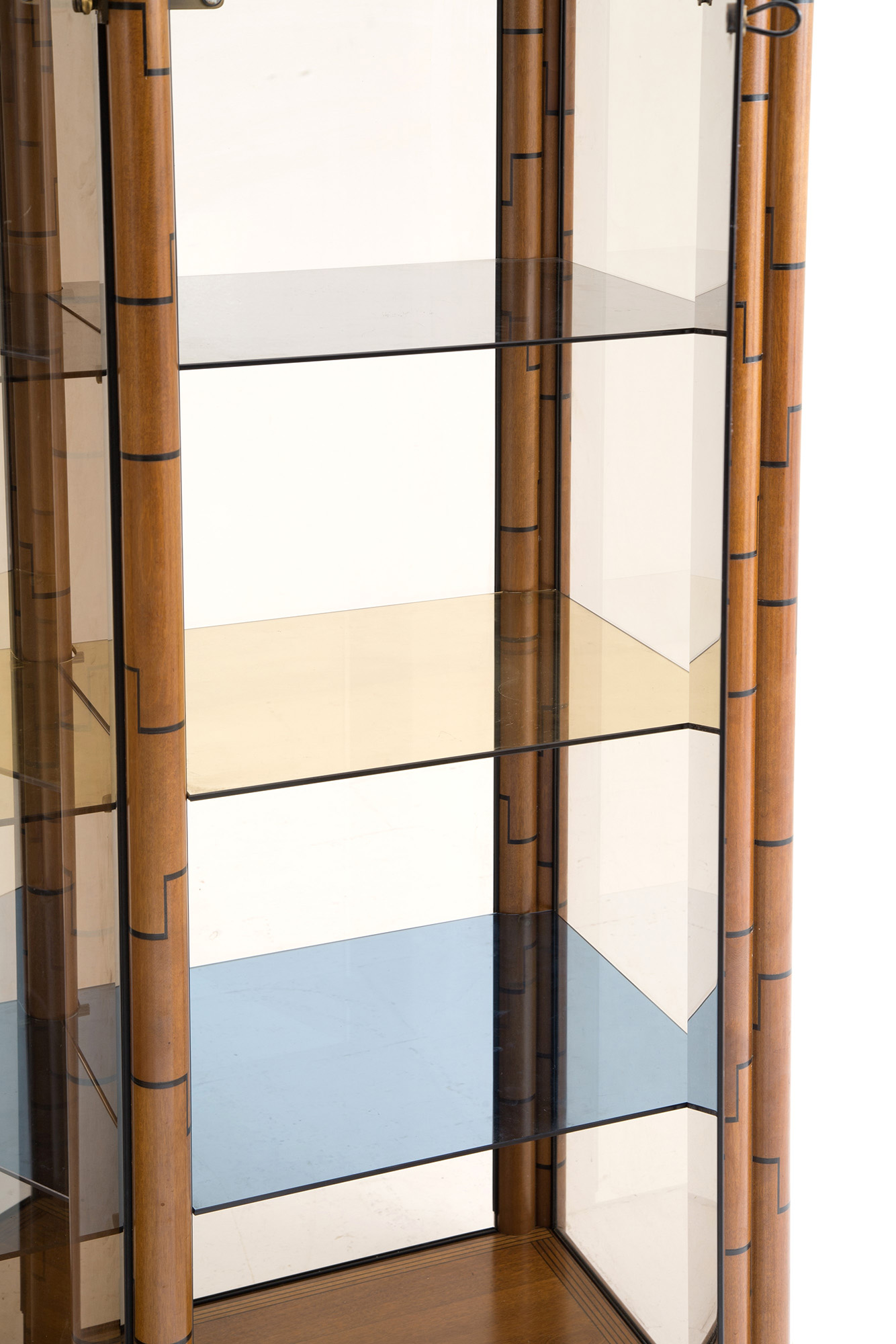 AFRA e TOBIA SCARPA. Artona series display cabinet with three doors in walnut wood inlaid in dark wood. MAXALTO production. 70's. Small flaw on the top. 141x143x44 cm approx. AFRA e TOBIA SCARPA. Vetrina serie Artona a tre ante in legno di noce intarsiata in legno scuro. Produzione MAXALTO. Anni '70. Piccolo difetto sul piano. 141x143x44 cm ca.