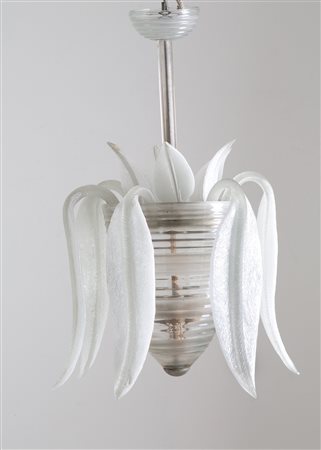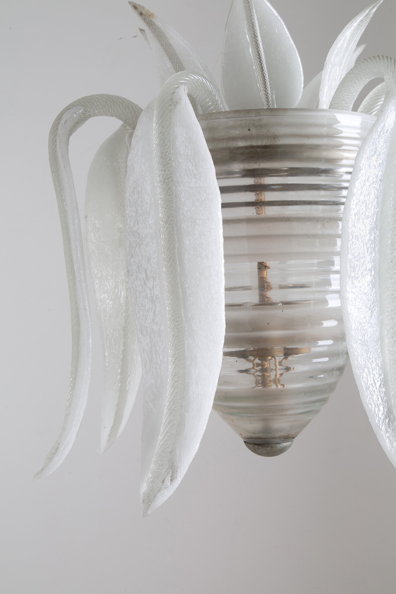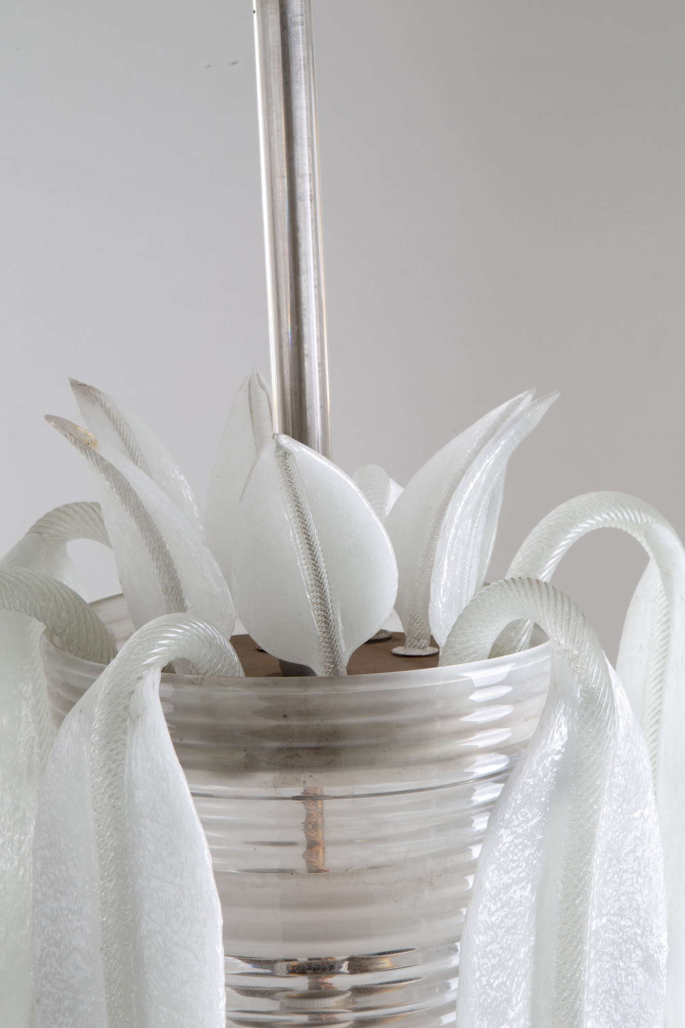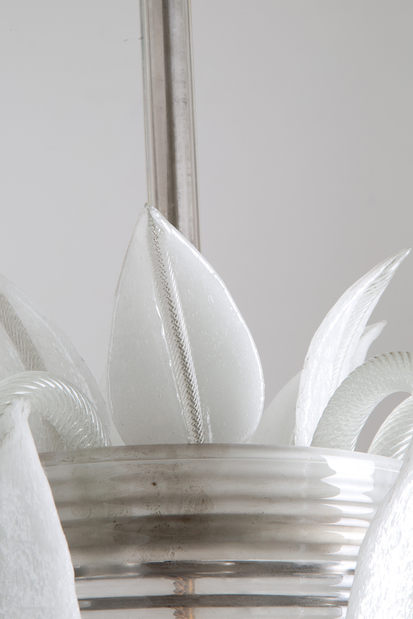 Murano blown glass chandelier with leaves. 75x40 cm approx. Lampadario in vetro soffiato di Murano con foglie. 75x40 cm ca.