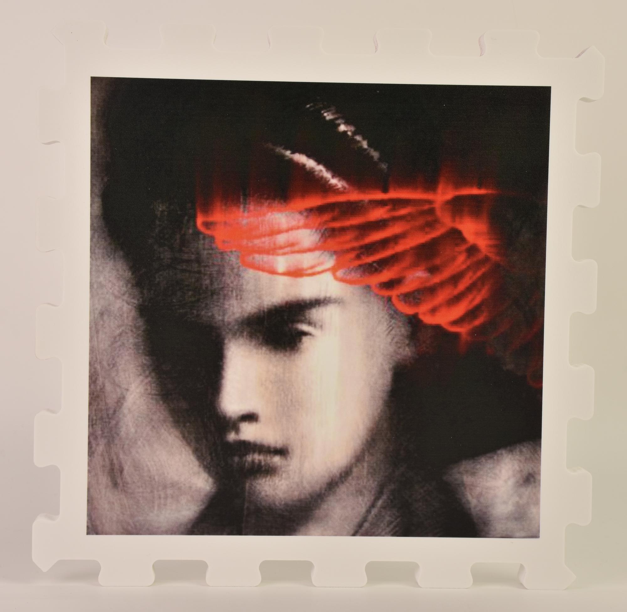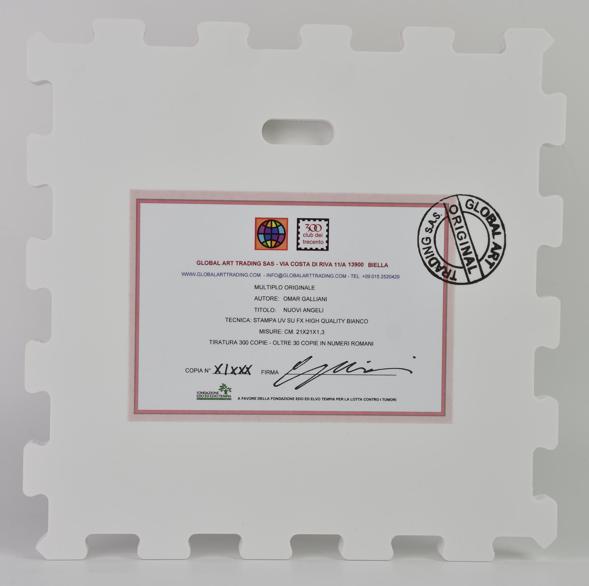 Omar Galliani NUOVI ANGELI stampa UV su FX high quality bianco, cm 21x21x1,3;...