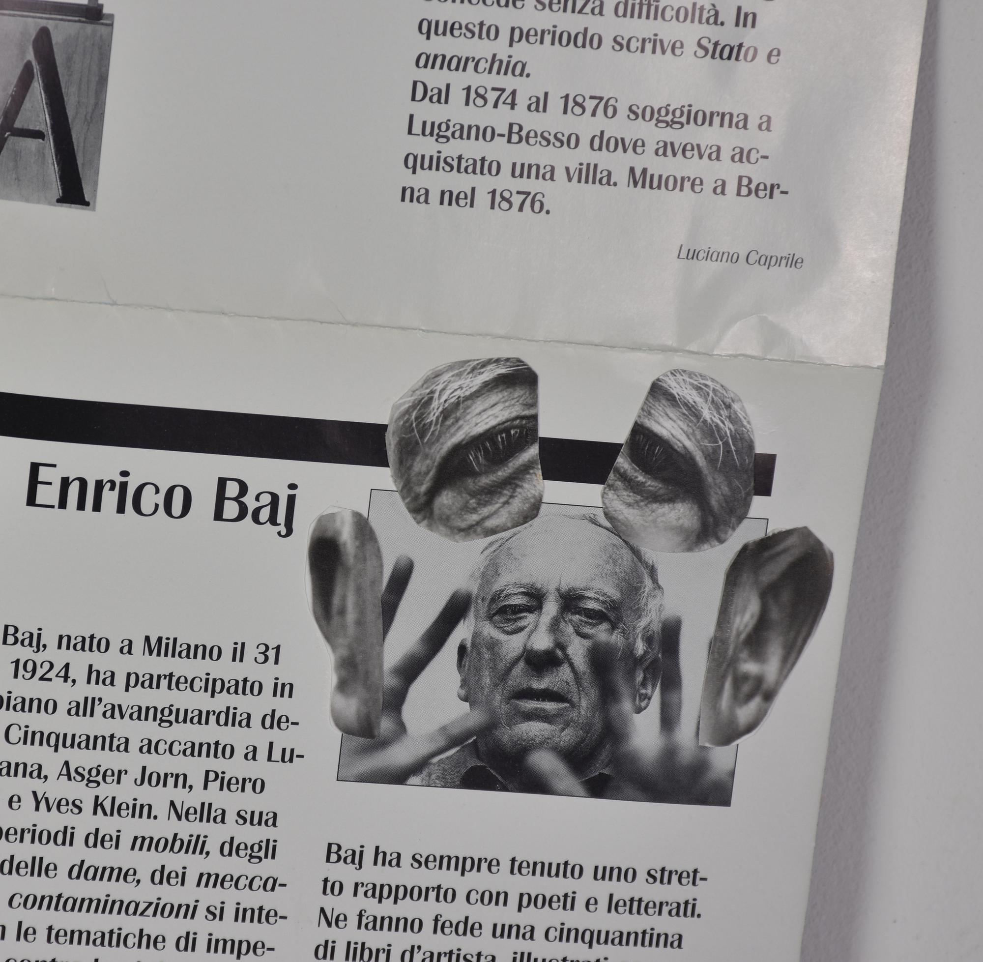 manifesto edito in occasione della mostra Baj - Bakunin dell'ottobre - novembre 1996, l'intervento dell'artista si trova nella parte dedicata all'invito alla mostra