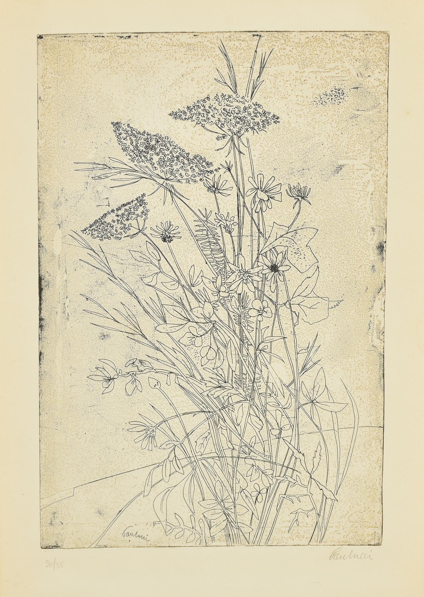 Enrico Paulucci FIORI acquaforte cm 39,3x26,5, su foglio cm 47,5x33; es....