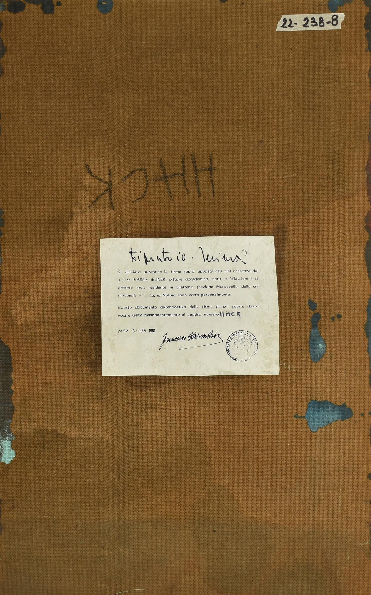 sul retro: sigla ed etichetta d'autenticita' dell'autore