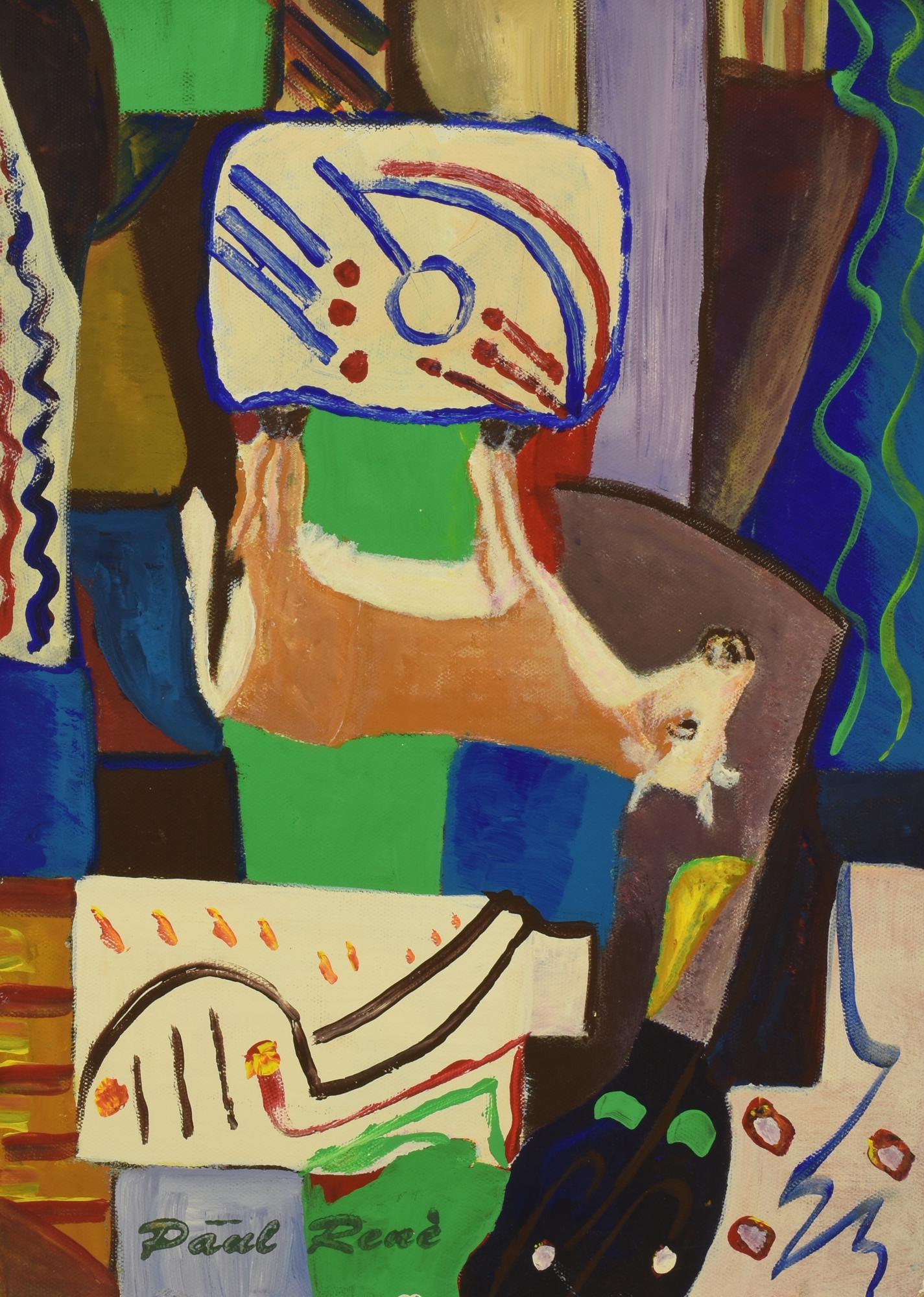Paul Rene' COMPOSIZIONE CON MUCCA olio su tela applicata su cartone, cm 35x25...