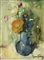 Alfredo Ciocca PAPAVERO E RANUNCOLI olio su cartone telato, cm 40x30 firma e...