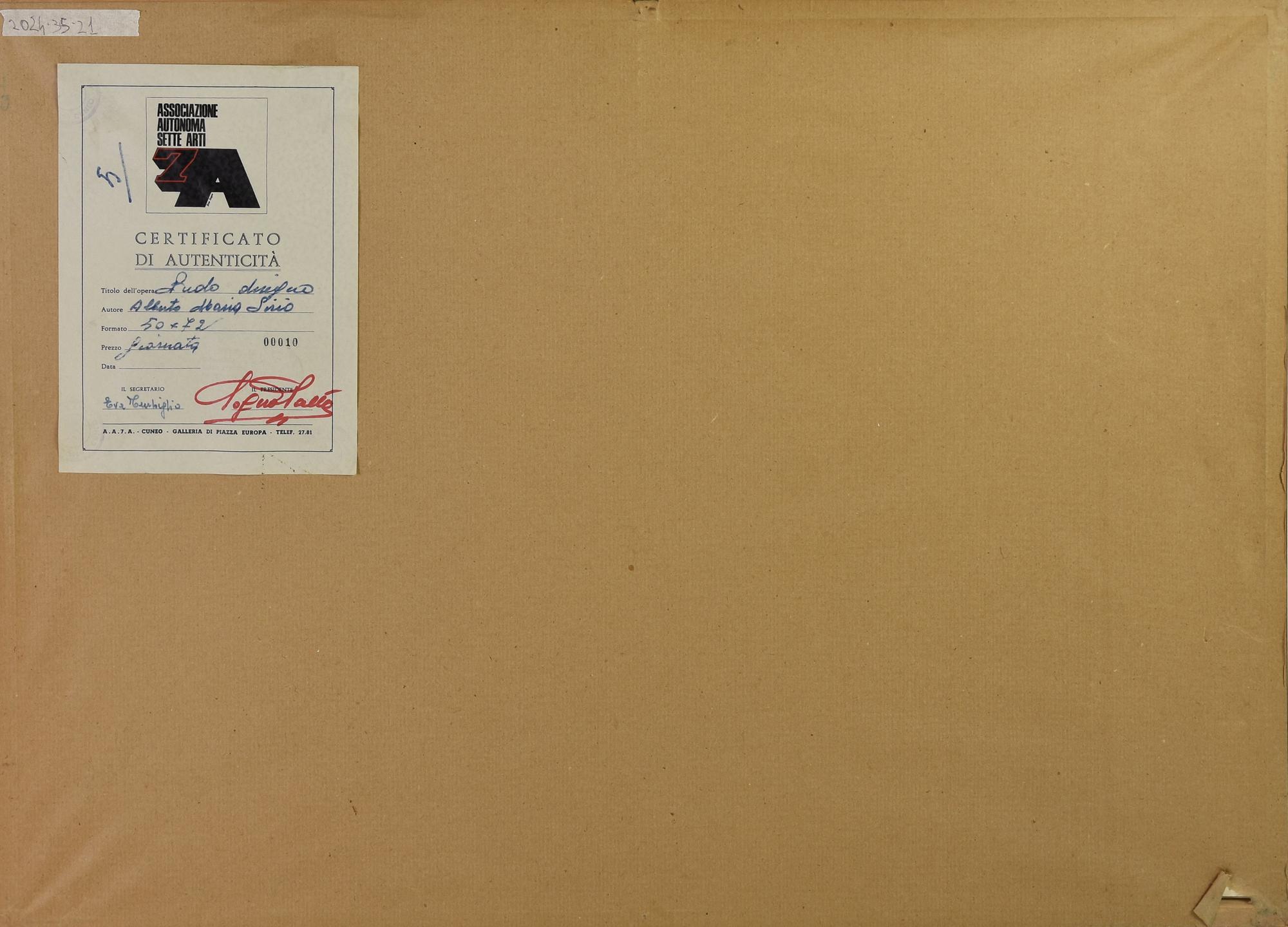 sul retro: certificato di autenticita' Associazione Autonoma Sette Arti, Cuneo
