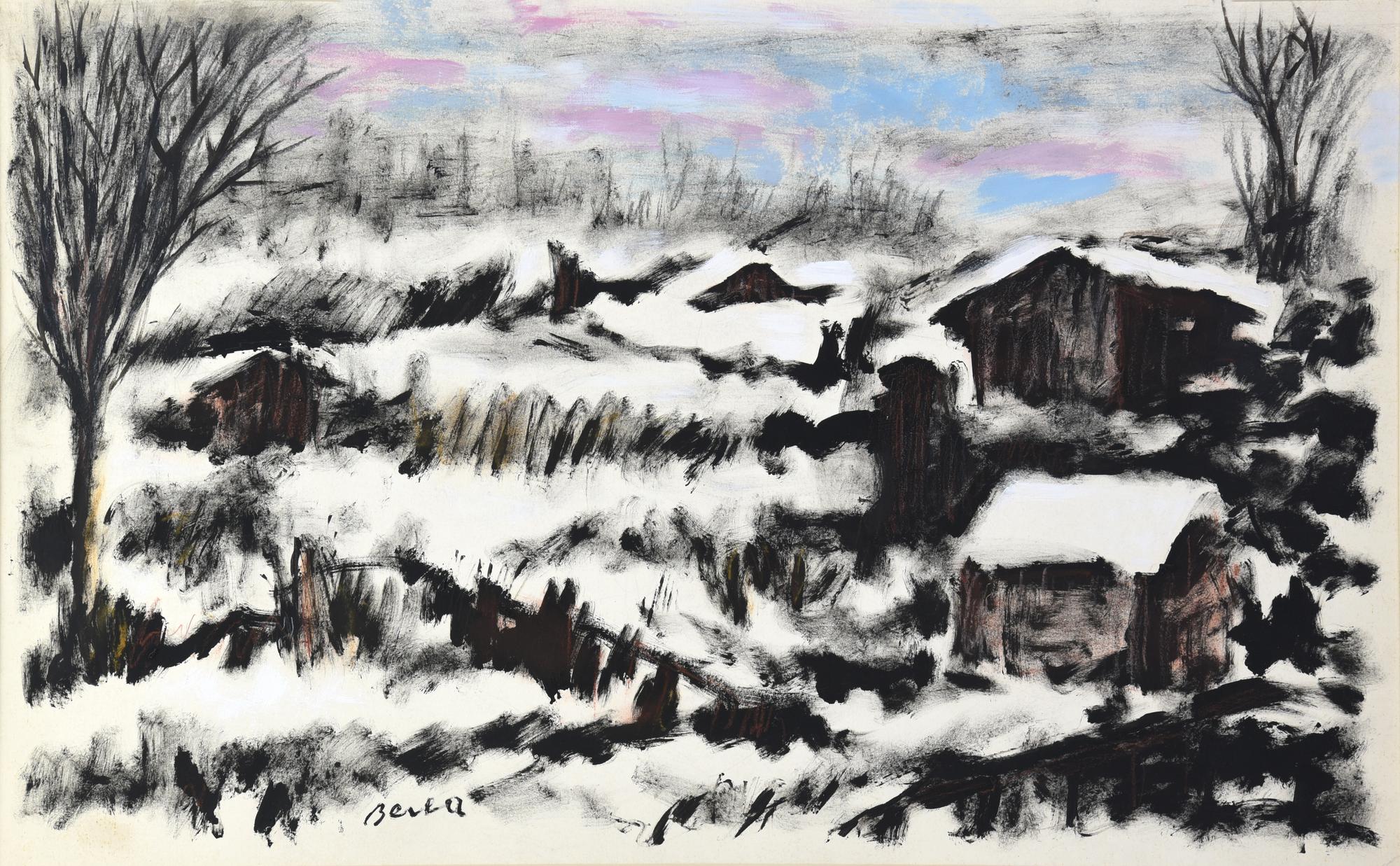 Dimitrie Berea PAESAGGIO INNEVAT0 tecnica mista su carta, cm 43x70 firma