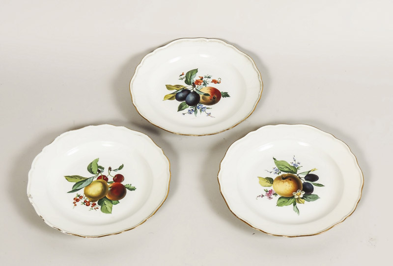SERIE DI NOVE PIATTI IN PORCELLANA - NINE PORCELAIN PLATES Meissen, fine del XIX/inizio del XX secolo - Meissen, late 19th/early 20th Century ciascuno dipinto con trionfi di frutti policromi, alcuni difetti, uno restaurato