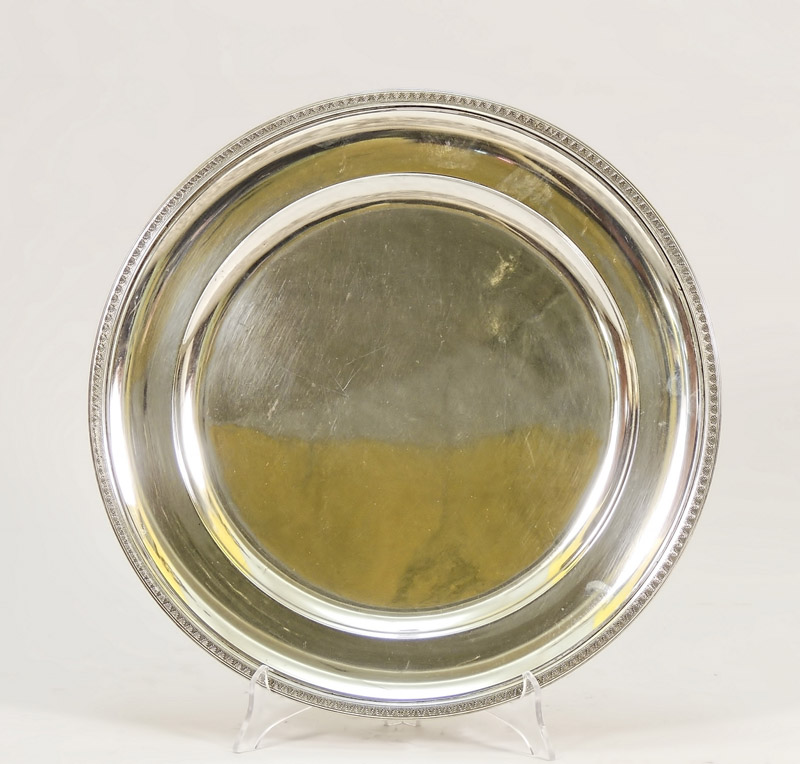 VASSOIO TONDO IN ARGENTO - ROUND SILVER TRAY bordo sbalzato a palmette diam...