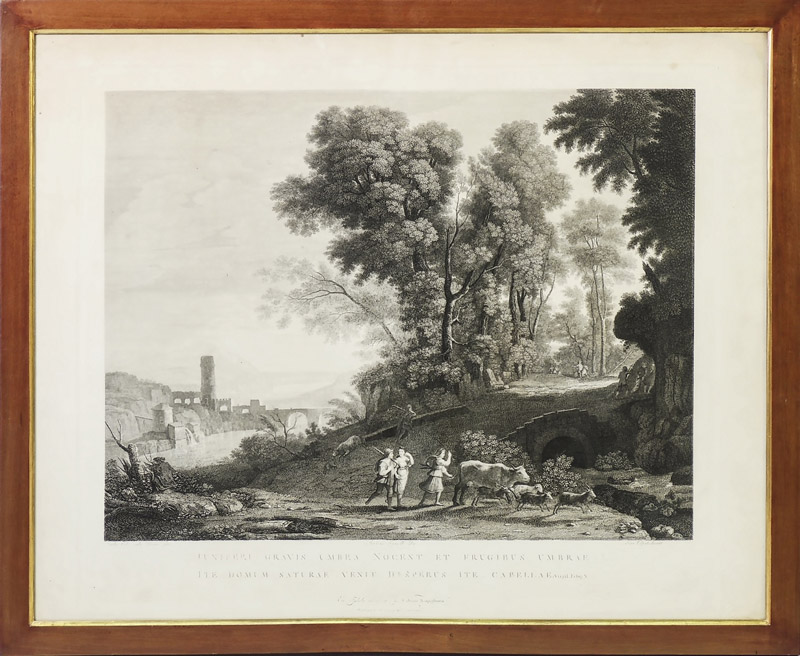 GIOVANNI VOLPATO (1733-1803) Paesaggio fluviale con pastori e armenti - River Landscape with Shepherds and Herds incisione - engraving, in cornice difetti cm 56x63 Reca timbro a secco - With stamp