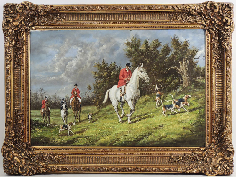 SCENA DI CACCIA ALLA VOLPE - FOX HUNTING SCENE olio su tela - oil on canvas, in cornice cm 60x90