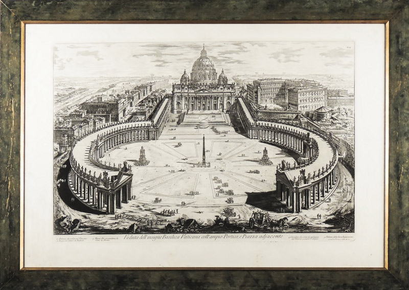 GIOVAN BATTISTA PIRANESI (1720-1778) Veduta dell'insigne Basilica vaticana coll'ampio portico e piazza adiacente - Rome View incisione - engraving, Parigi, Edizione Firmin-Didot, 1835, in cornice cm 47x70