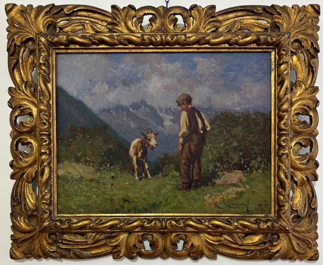 Ercole Garavaglia Milano 1866 - 1935, Paesaggio montano con pastorello Olio su tela cm 38x50 firmato in basso a dx