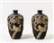 COPPIA DI VASI CINESI RIVESTITI IN METALLO - PAIR OF CHINESE INLAID METAL VASES decorati in oro con uccellini su rami di pesco a rilievo h cm 21