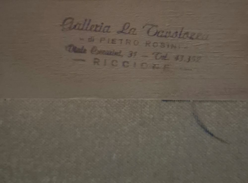 Acrilici su tela. Firmato al verso in basso a destra Monachesi. Al verso timbro Galleria La Tavolozza, Riccione.