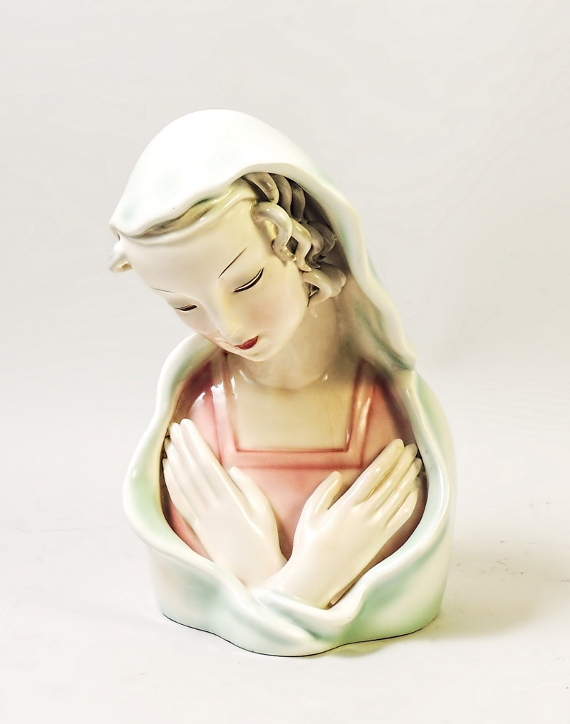MADONNA Austria, Goldscheider gruppo in ceramica decorato all'aerografo nei...