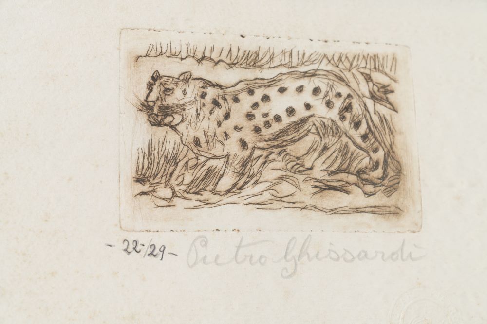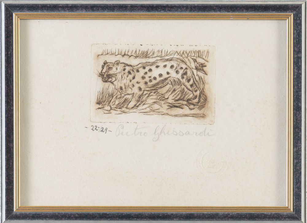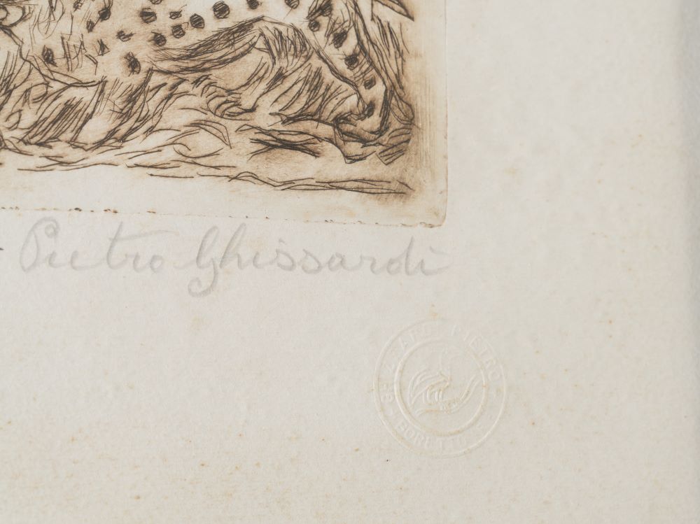 Esemplare 22/29. Incisione su carta. Numerato e firmato a matita sul margine in basso. Timbro a secco.