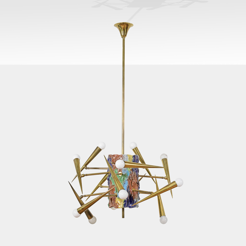lampada a sospensione in ottone e ceramica smaltata