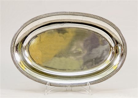 VASSOIO OVALE IN ARGENTO - OVAL SILVER TRAY bordo sbalzato a palmette cm...