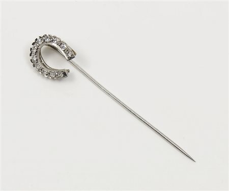 SPILLA DA CRAVATTA IN ORO BIANCO E DIAMANTI - WHITE GOLD AND DIAMOND TIE-PIN realizzata a ferro di cavallo impreziosito da brillanti gr 2,1