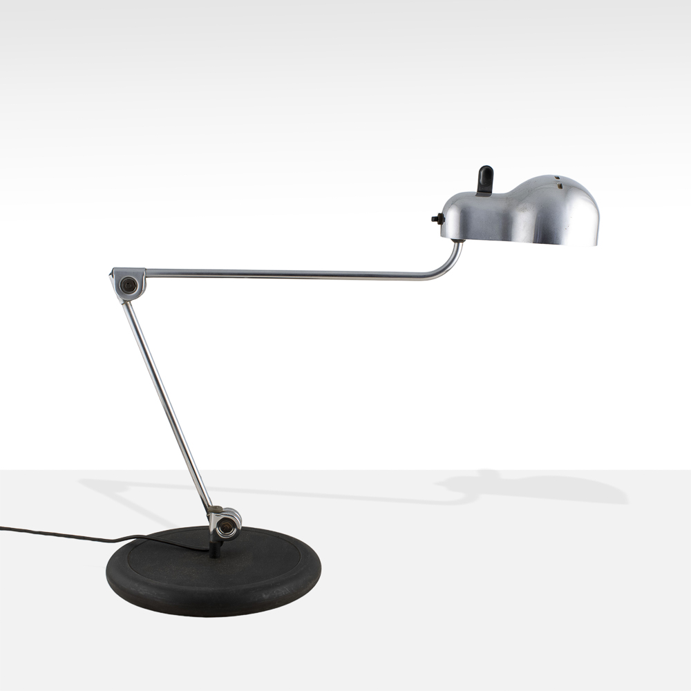 lampada da tavolo mod. Topo in metallo cromato e base in ABS, marchio della produzione, lievi usure