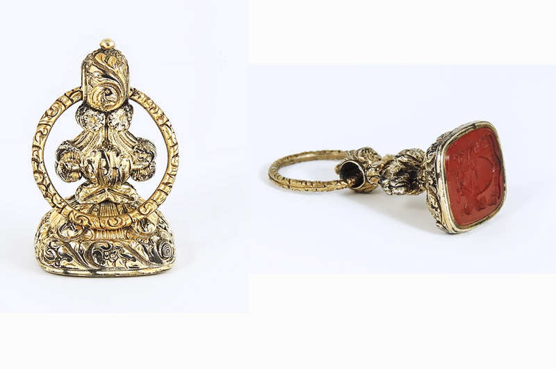 Lotto 661 | SIGILLO IN ORO GIALLO A BASSO TITOLO E CORNIOLA - A GOLD AND CARNELIAN SEAL...