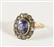 ANELLO A MARGHERITA IN ORO GIALLO, BIANCO, AMETISTA E DIAMANTI - YELLOW AND WHITE GOLD, AMETHYST AND DIAMOND RING inizio del XX secolo - early 20th Century al centro ametista di taglio ovale impreziosita da diamanti taglio vecchio gr 5,9