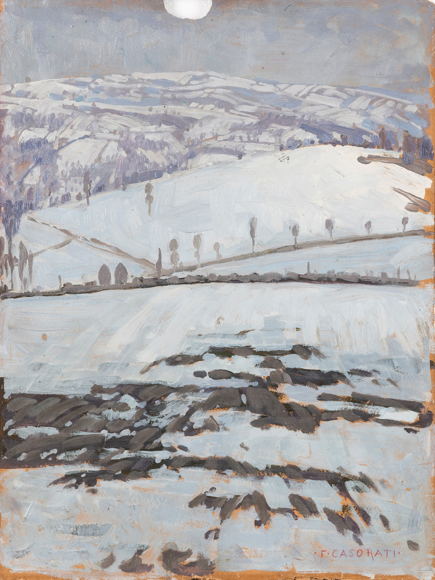Felice Casorati 1883 Novara-1963 Torino Neve, 1913 circa olio su cartone...