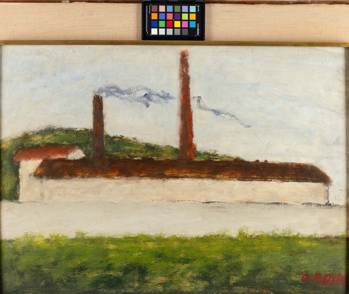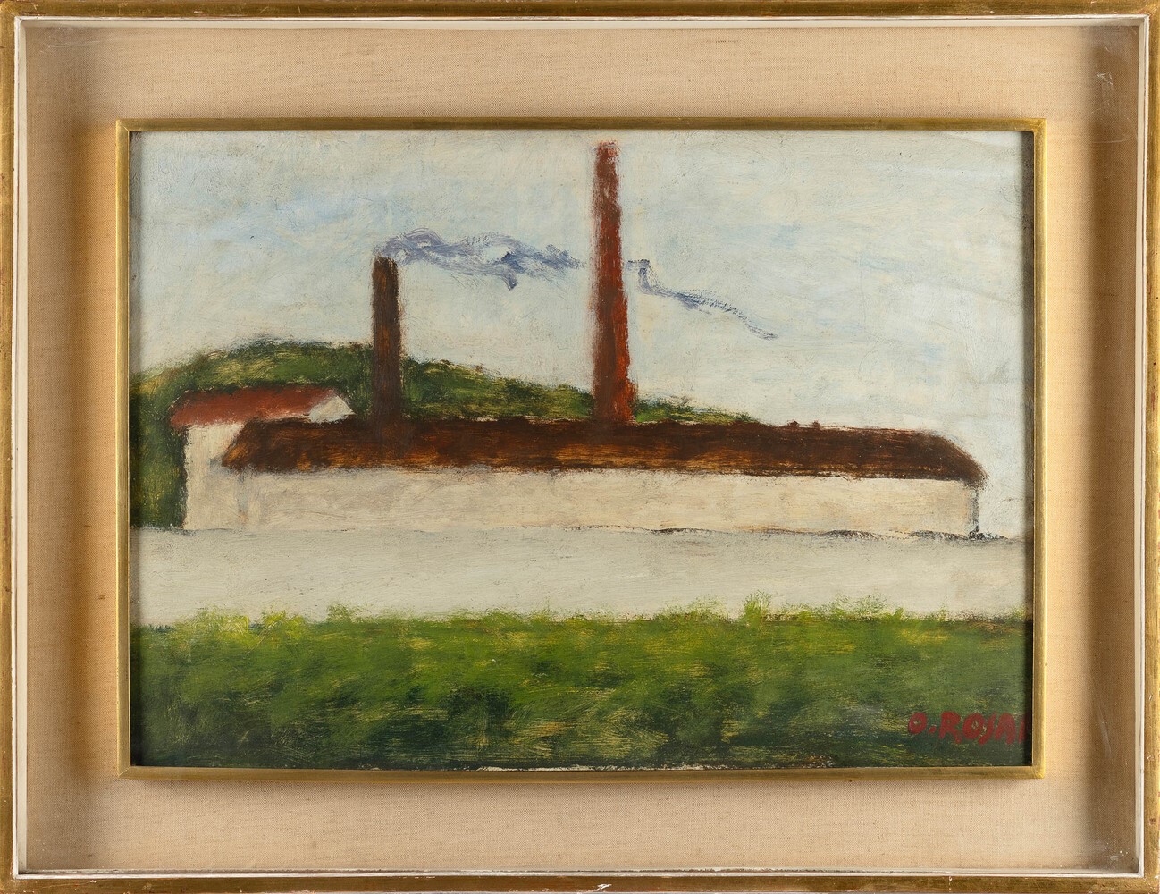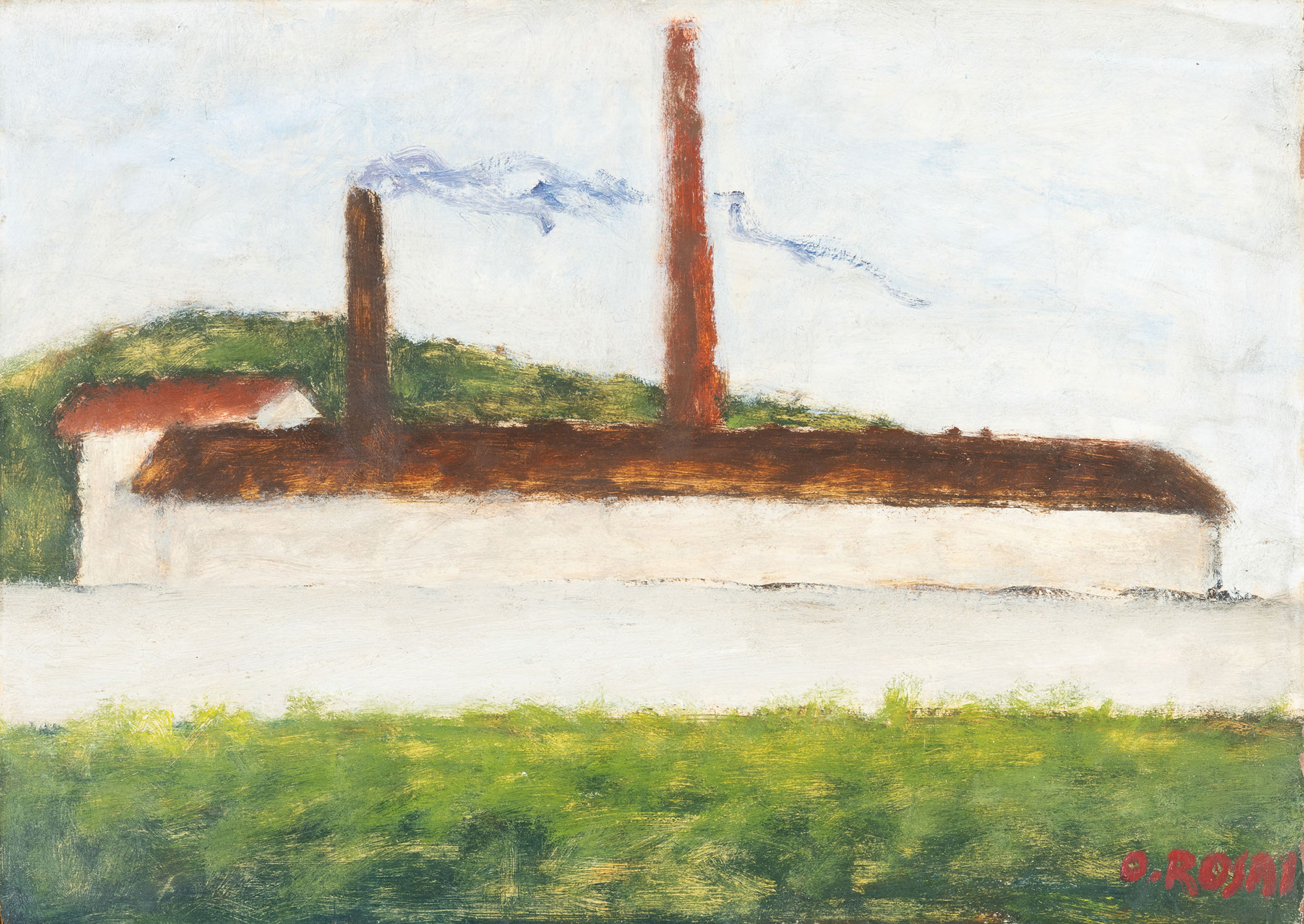 Ottone Rosai 1885 Firenze-1957 Ivrea Fabbrica, 1956 olio su faesite Cm 70X50...