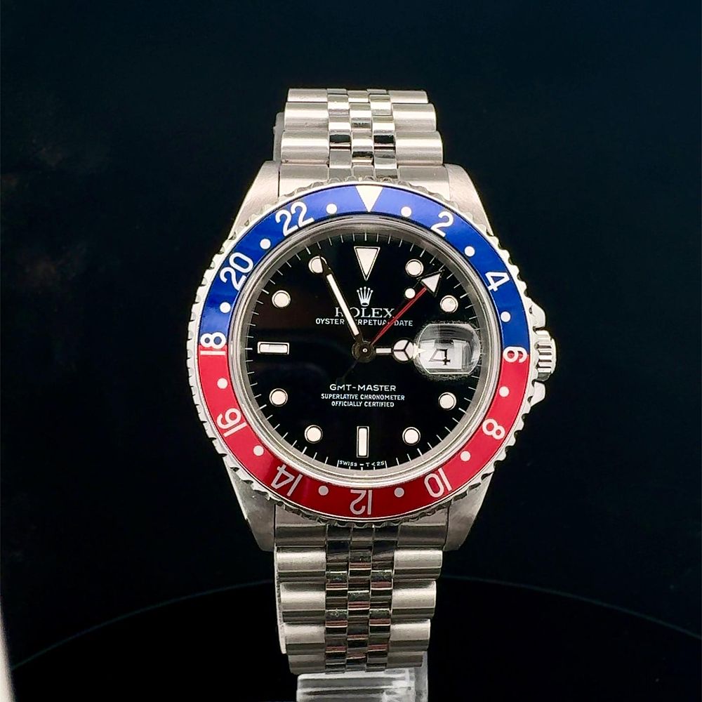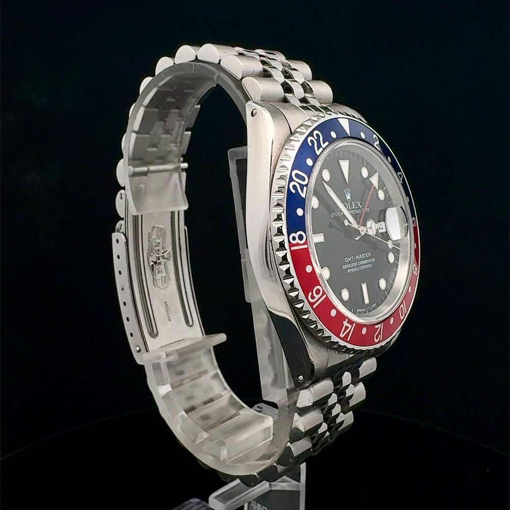 Marca Rolex Modello (Orologio) GMT-Master Numero di referenza 16700 Carica Automatico Materiale della cassa Acciaio Materiale cinturino Acciaio Anno di produzione fine 80 primi 90 Corredo documenti originali, NO BOX Materiale della cassa Acciaio Diametro 40 mm Impermeabile 10 ATM Materiale lunetta Acciaio Vetro Vetro zaffiro Quadrante Nero Numeri sul quadrante Senza numeri Cinturino Materiale cinturino Acciaio Colore cinturino Acciaio Chiusura Déployante Materiale chiusura Acciaio Funzioni Data, GMT