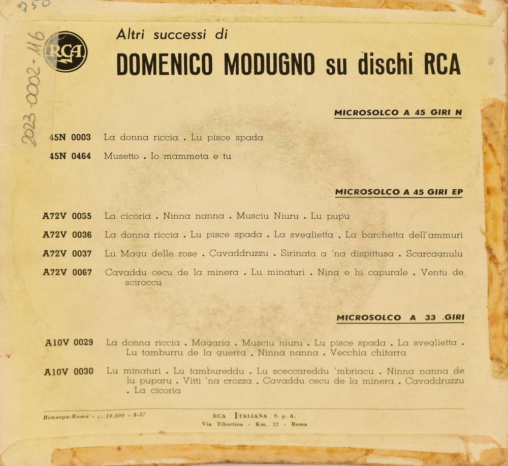 EP 45 GIRI Domenico Modugno, - La donna riccia - Lu pisce spada