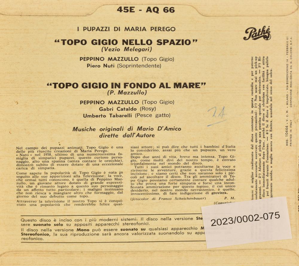 EP 45 GIRI Topo Gigio, - in fondo al mare - nello spazio