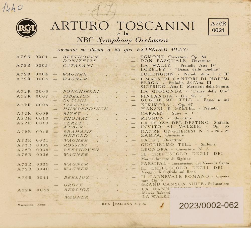 EP 45 GIRI Arturo Toscanini e la NBC Symphony Orchestra, Wagner Faust