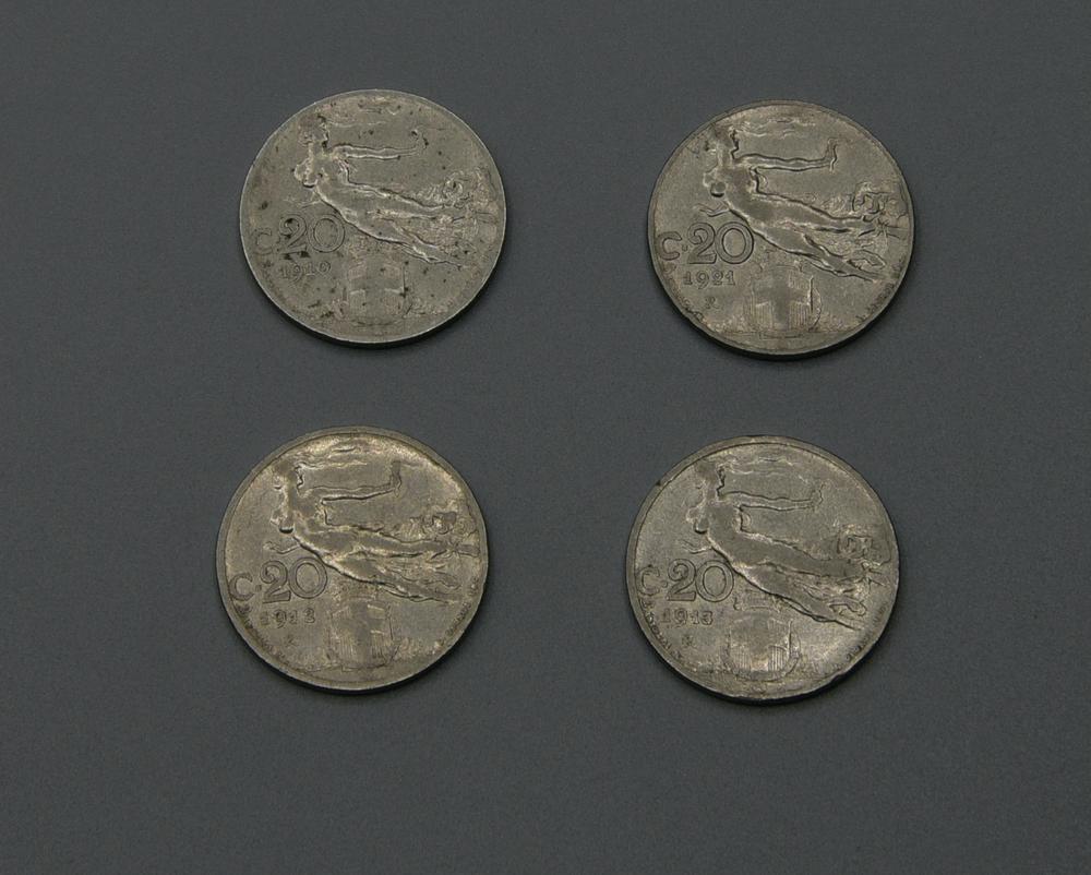 4 MONETE DA 20 CENTESIMI, ITALIA, NICHEL, 1910, 1912, 1913, 1921 Materiale:...