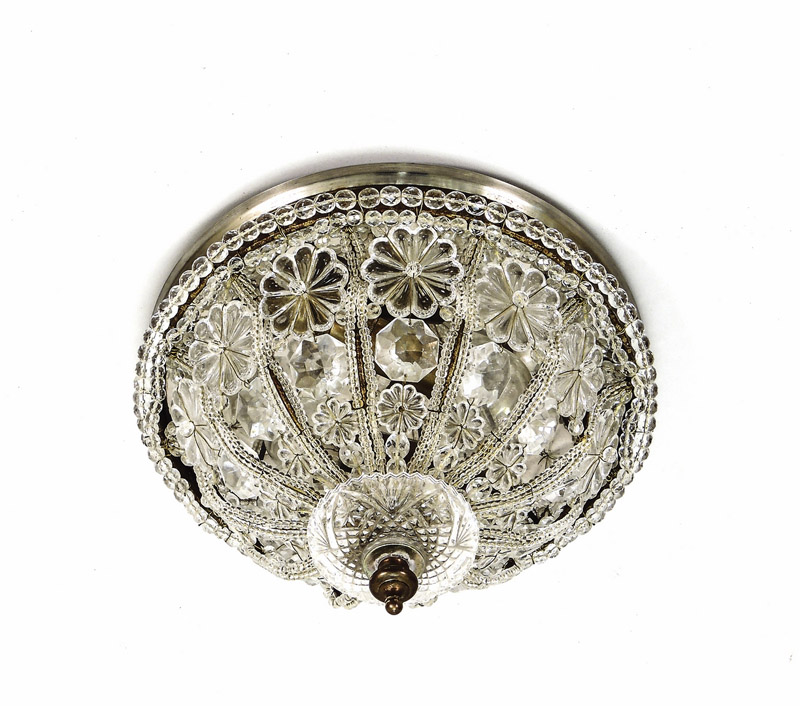PLAFONIERA IN VETRO - GLASS CEILING LIGHT inizio del XX secolo - early 20th Century con catene di perline e fiori h cm 18