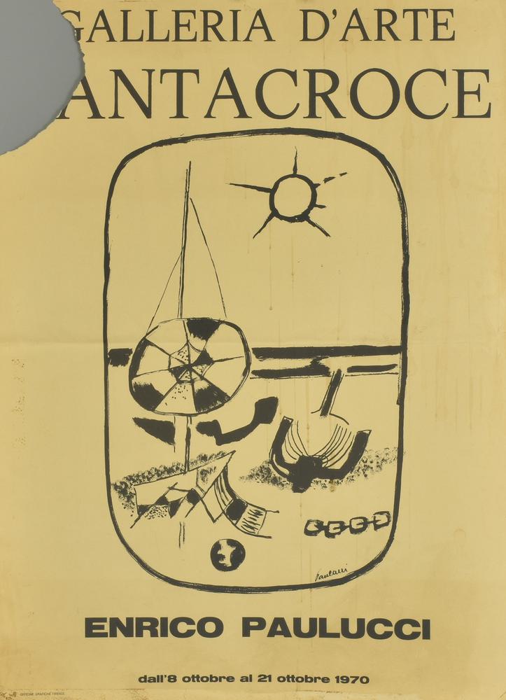 manifesto cm 66x48, realizzato da Officine Grafiche Firenze per la mostra 'Enrico Paulucci' tenutasi alla Galleria d'Arte Santacroce nell'ottobre 1970