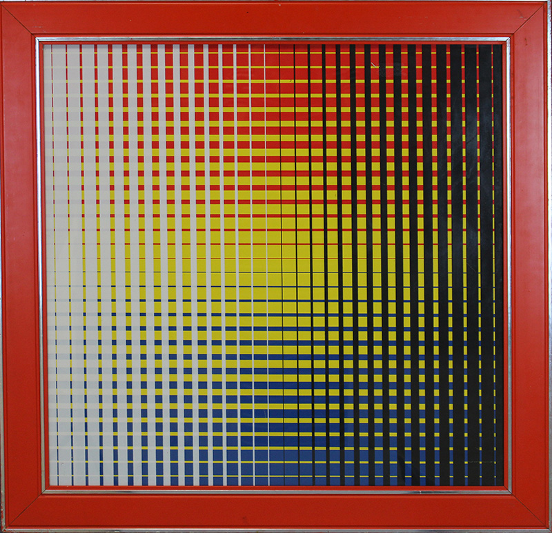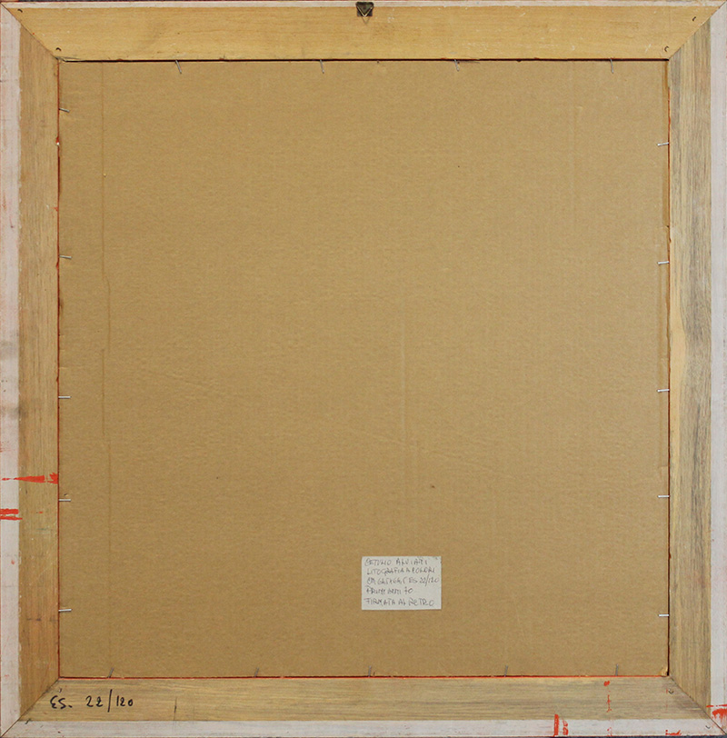 GETULIO ALVIANI, Primi anni '70, Litografia a colori su cartoncino, Dim. 64,5x64,5, Al fronte: esemplare 22/120, Al verso: firmato, Opera con cornice