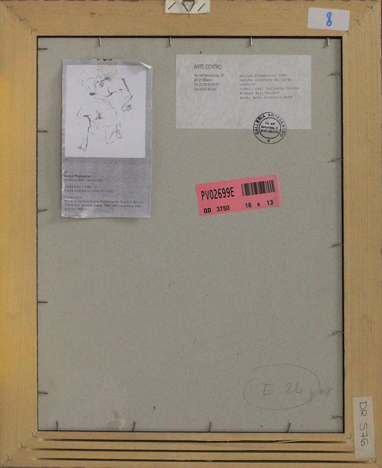 ENRICO PRAMPOLINI, Matita colorata su carta, Dim. 16x13, Opera esposta alla Galleria civica Modena in data Novembre '91/ Gennaio '92, Opera archiviata presso l'Archivio Arte centro (Milano) al n° 9009