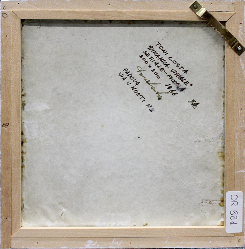 TONI COSTA, "Dinamica Visuale", 1966, Seriale-piccola, Ottico dinamico, Dim. 20X20, Al verso: firma, titolo, dimensione, Via V. Monti, N2, Padova
