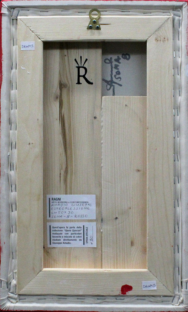 GIUSEPPE AMADIO, "Soma-8-Rosso", Anni 2000, Estroflessione su tela, Dim. 50x30, Al verso: titolo e firma, Opera archiviata presso l'Archivio generale di Giuseppe Amadio, Opera facente parte delle serie "Opere speciali" N°30