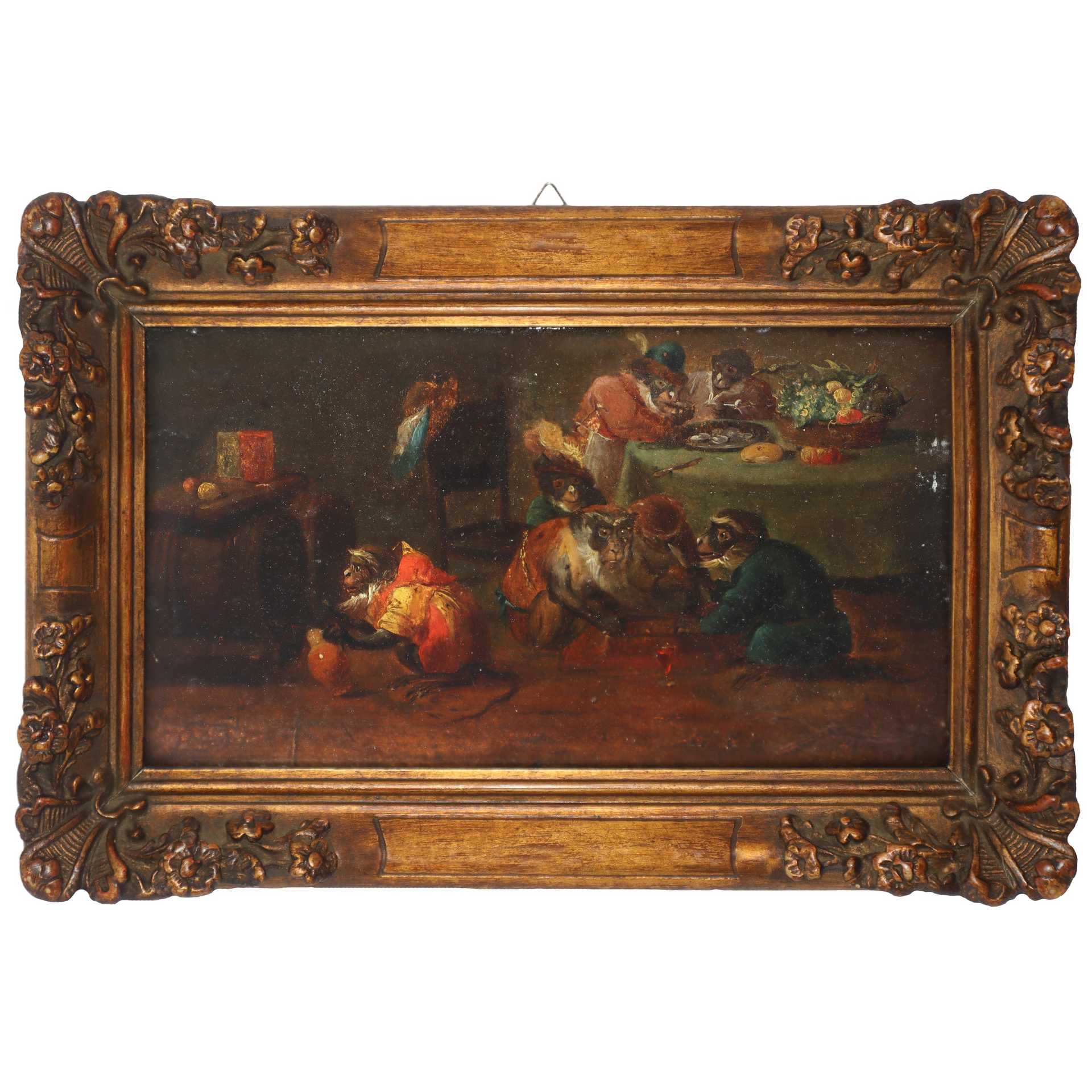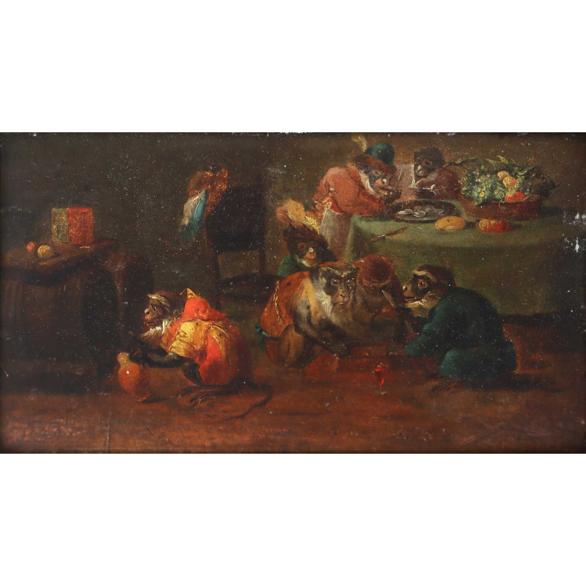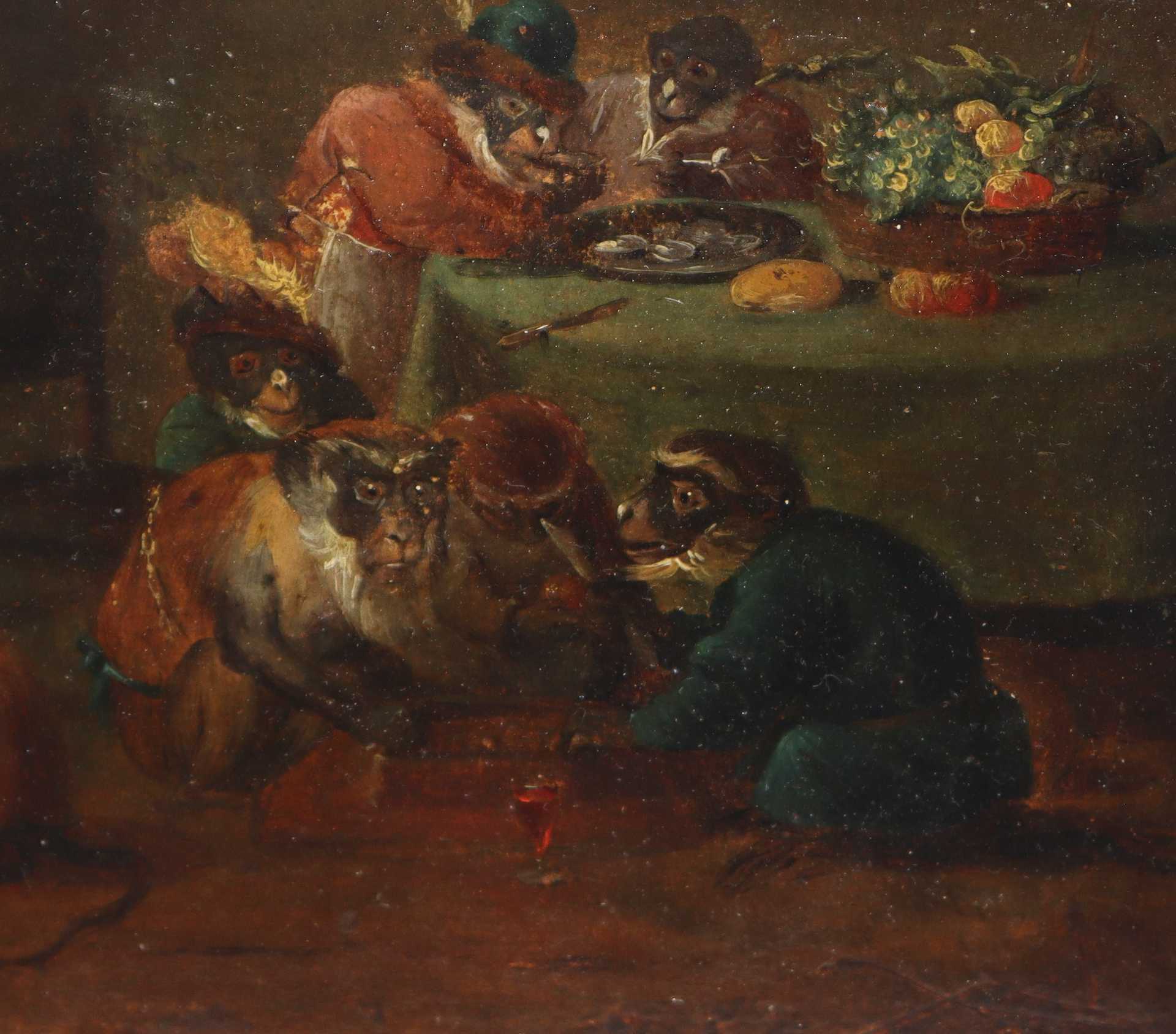 David Teniers il Giovane (attribuito a) (Anversa 15/12/1610-Bruxelles 25/04/1690) - Il banchetto delle scimmie, 17° Secolo