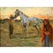 Alessandro Milesi (Venezia 1856-Venezia 1945) - Cavallo con personaggio h cm 38.5x47 in cornice h cm 41.5x50 Olio su tavola Alessandro Milesi è stato un pittore italiano originario di Venezia della metà dell’Ottocento. Egli si forma all'Accademia di Belle Arti di Venezia dal 1869 al 1874 con Napoleone Nani, pittore ritrattista. Nel 1879 esordisce all’Esposizione di Torino. E nel 1997 espone alla prima edizione della Biennale di Venezia. Nel 1899 entra a far parte della Corporazione di Pittori e Scultori Italiani con lo scopo di dare maggior impulso all’arte. Le sue tele si caratterizzano per la pennellata libera, veloce e sintetica e luminosa e l’artista è interessato principalmente alla rappresentazione della realtà umile e quotidiana.