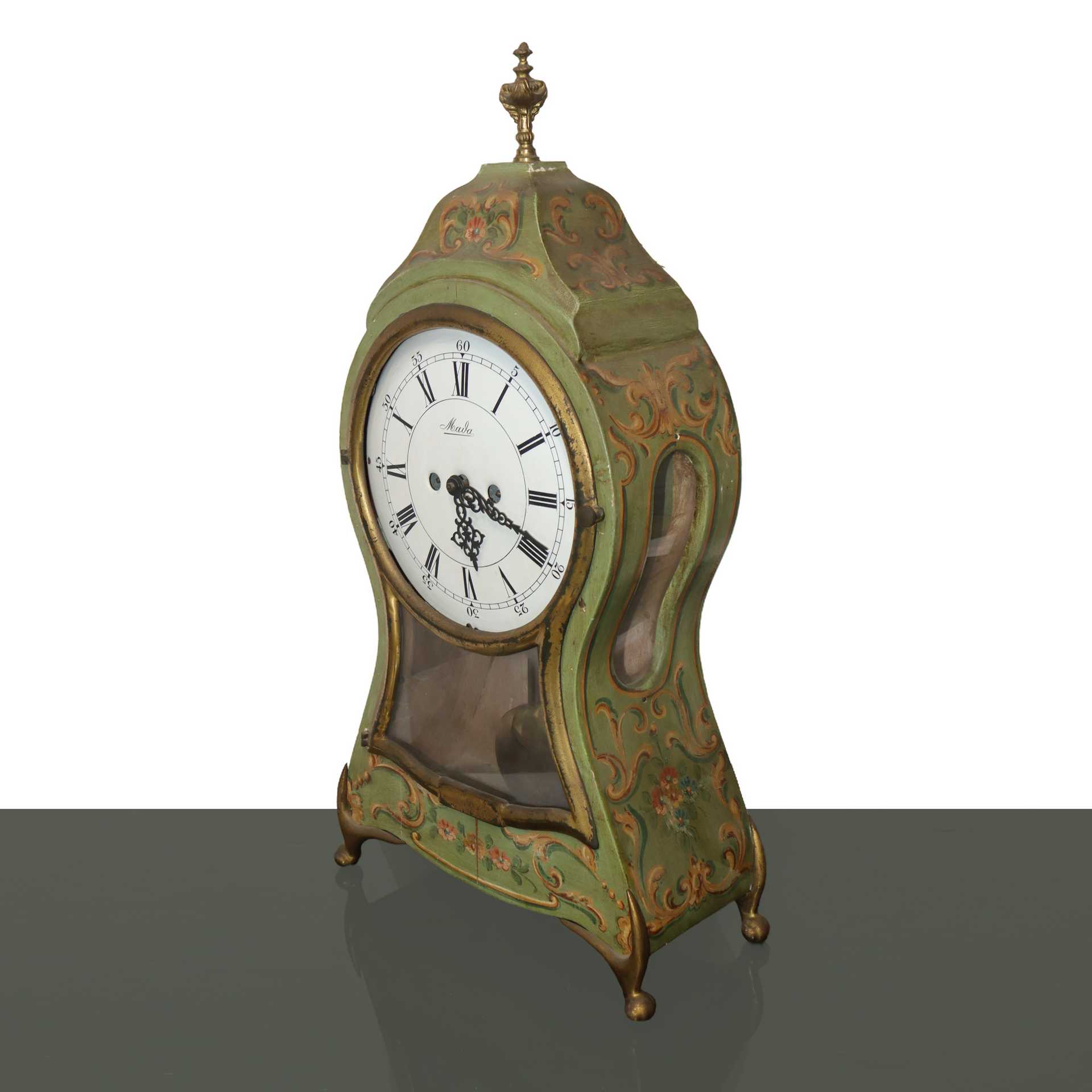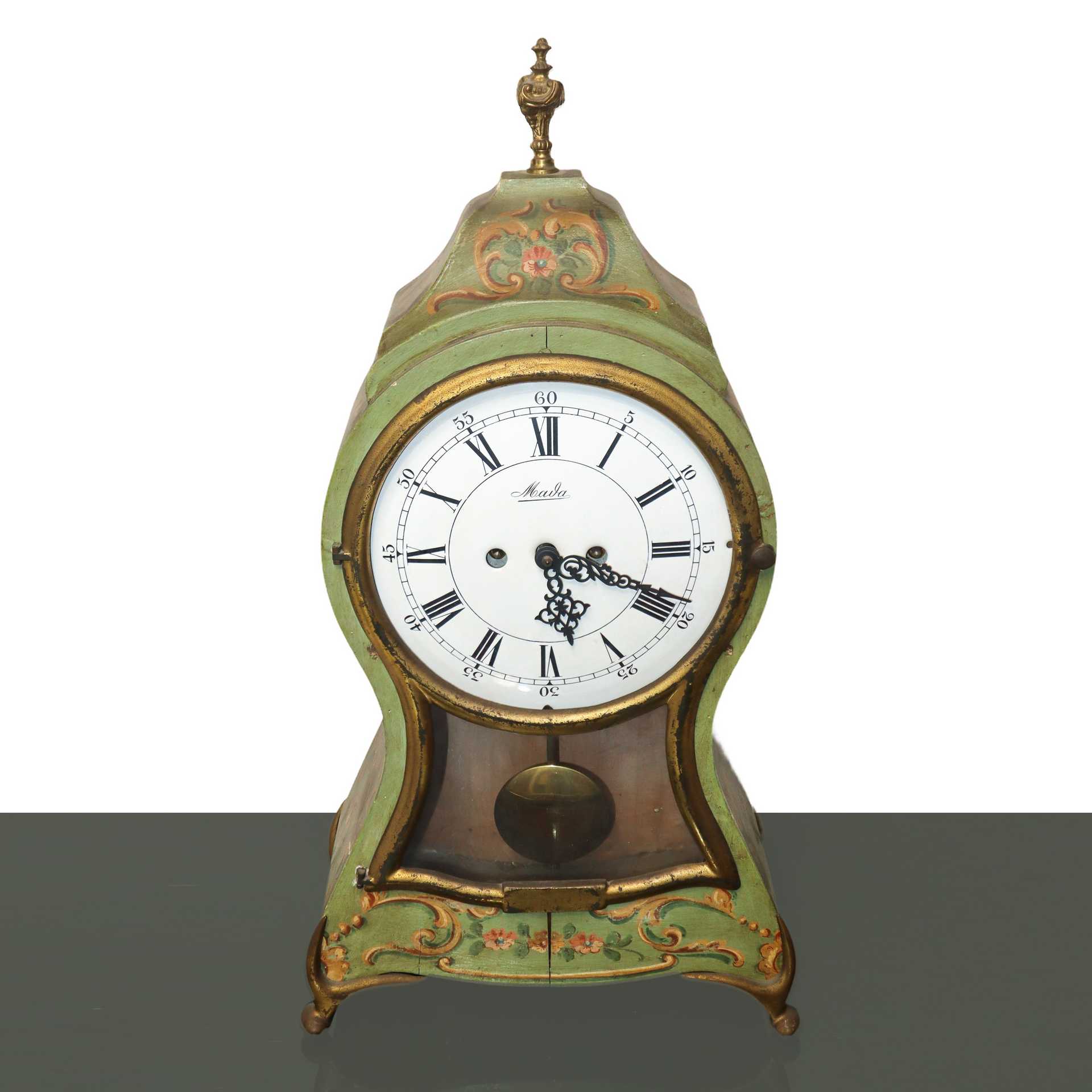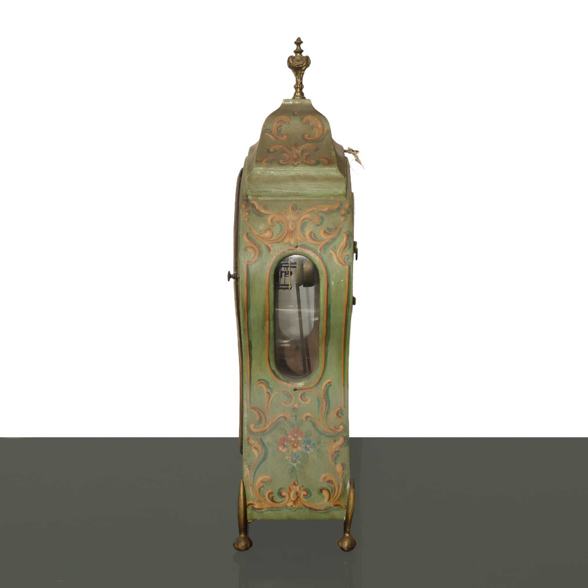 Orologio da tavolo a pendolo dipinto e laccato sui toni del verde , 20° Secolo