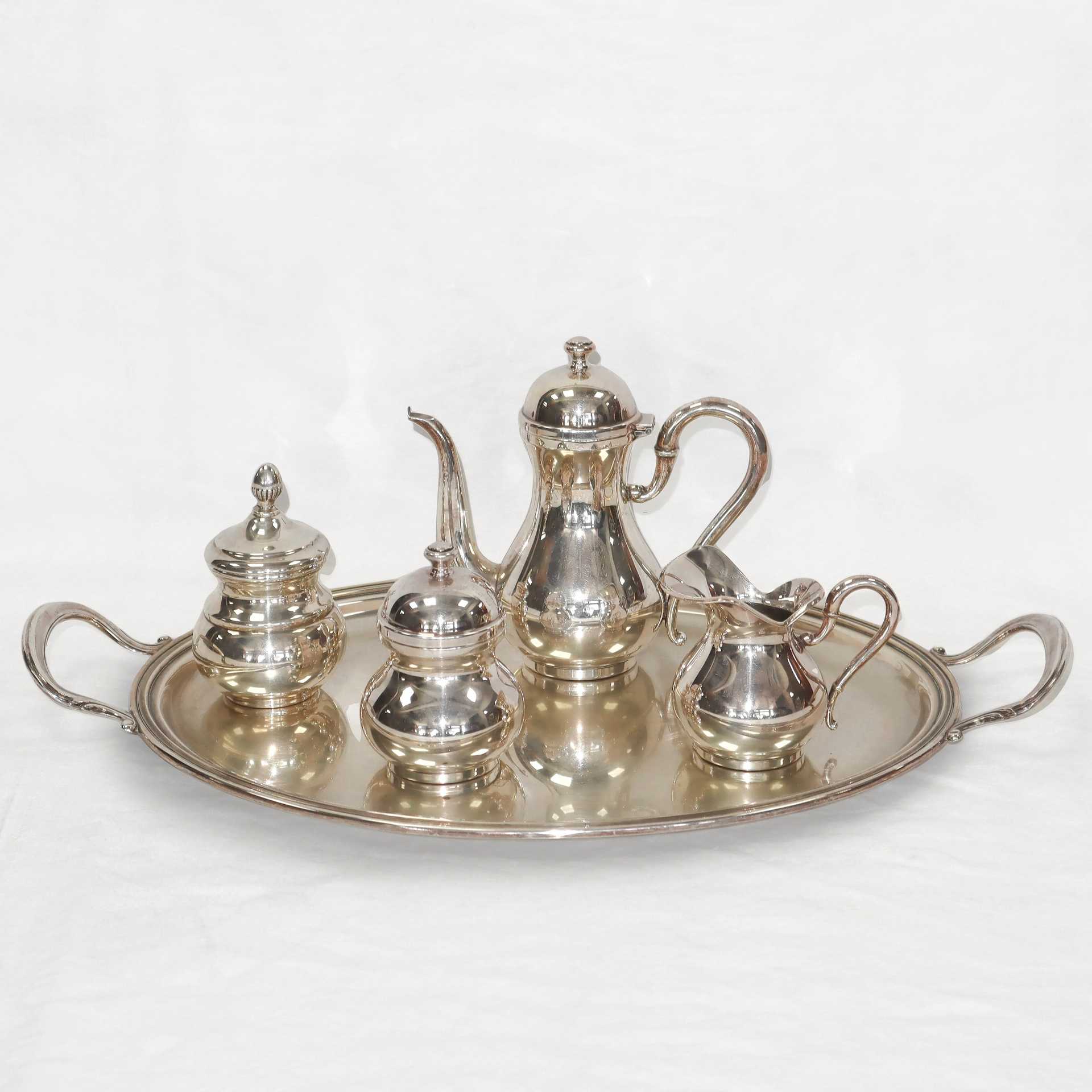 Servizio da caffè in argento, 20° Secolo Gr 1268 Composto da Vassoio, caffettiera, lattiera e n. 2 zuccheriereComposto da Vassoio, caffettiera, lattiera e n. 2 zuccheriere