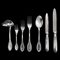 Servizio di posate in argento per 12 persone Kg 3052 Composto da 24 forchette, 12 cucchiai, 12 coltelli, 12 forchette frutta, 12 coltelli frutta, 12 forchette dolce, un cucchiaio da salsiera. Composto da 24 forchette, 12 cucchiai, 12 coltelli, 12 forchette frutta, 12 coltelli frutta, 12 forchette dolce, un cucchiaio da salsiera.