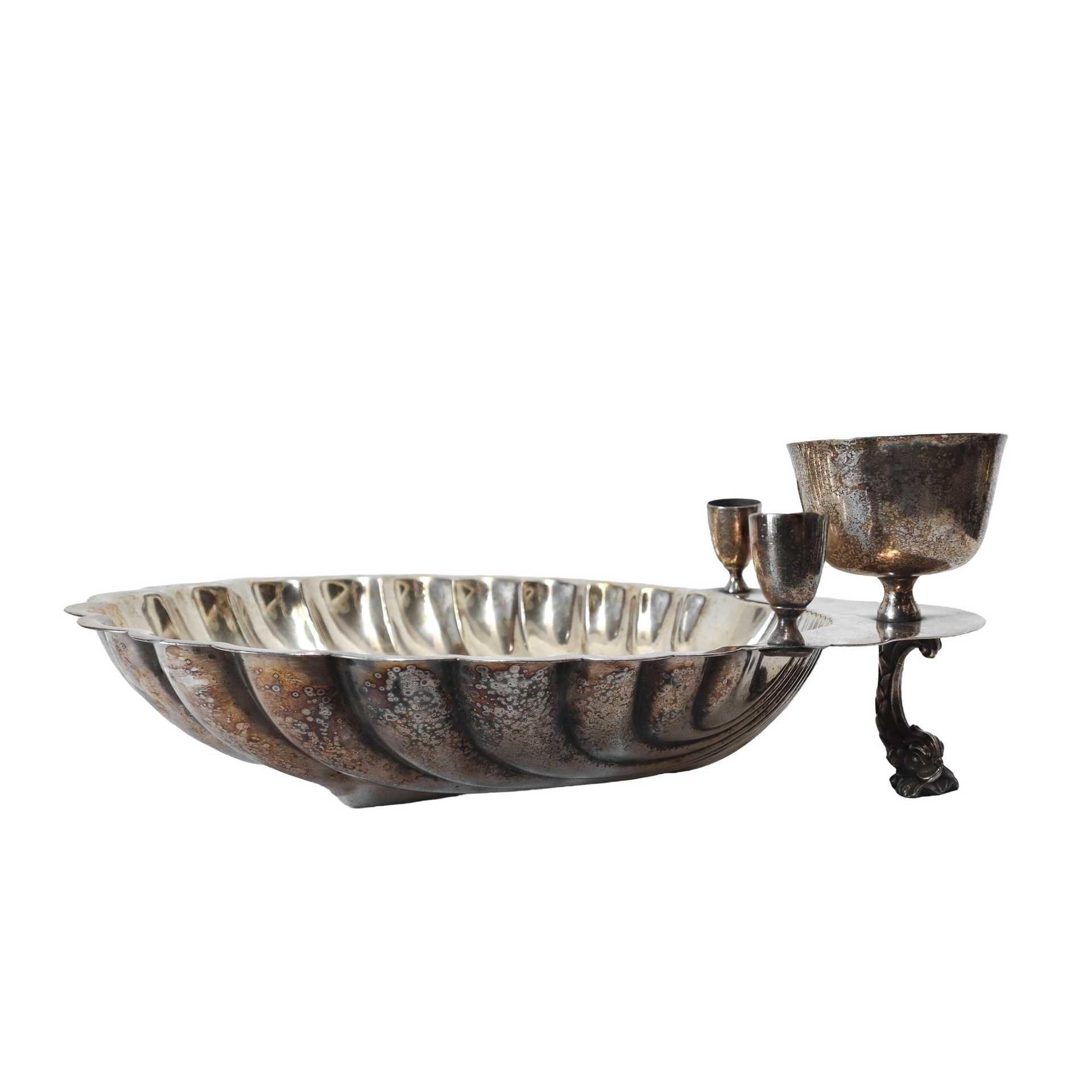 F.B. Rogers - Vassoio in Silver -plated a forma di conchiglia H cm 13x32 Con portacendele. Marchio della manifattura.Con portacendele. Marchio della manifattura.
