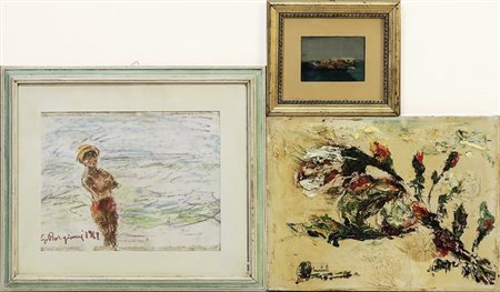 LOTTO DI DIPINTI - PAINTINGS LOT tra cui un bozzetto a tecnica mista di Guido Borgianni, in cornice (3)